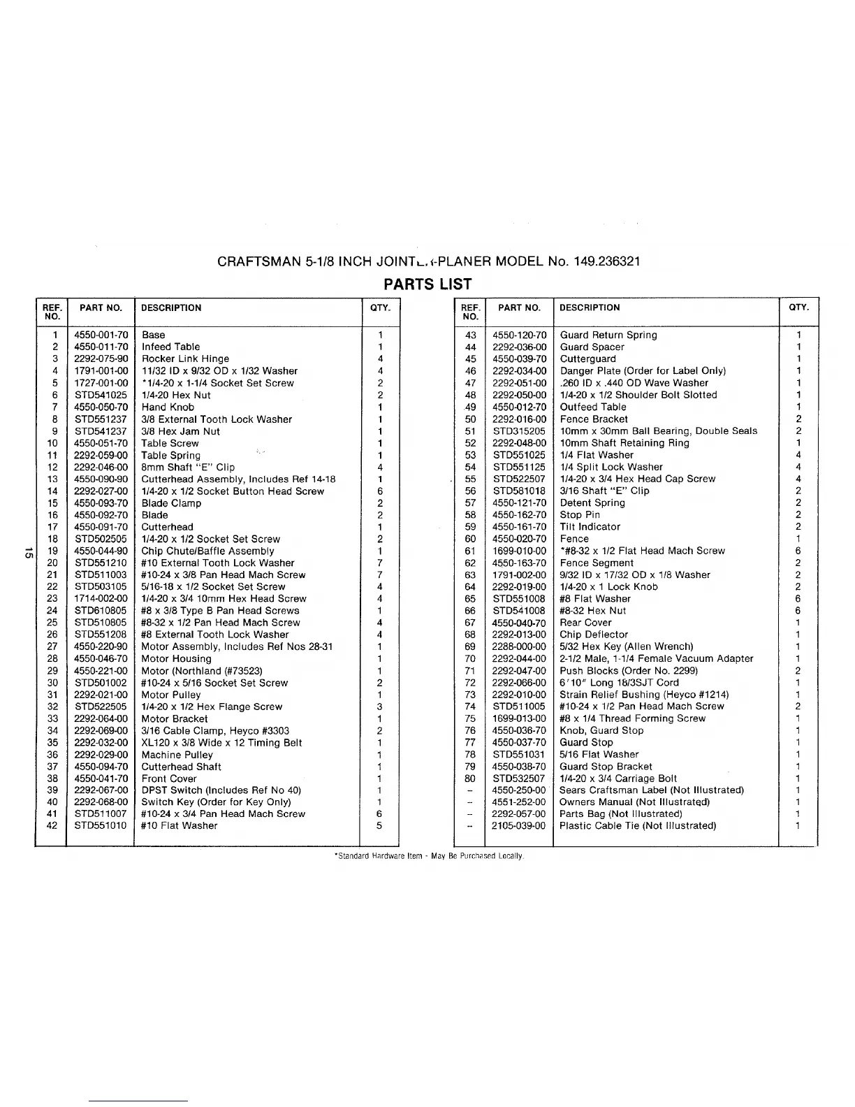 CRAFTSMAN 5-1/8 INCH JOINTL._-PLANER MODEL No. 149.236321