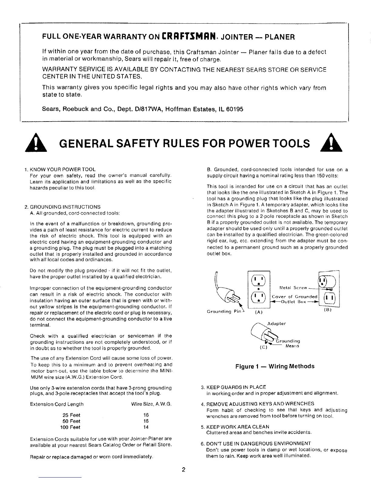 FULL ONE-YEAR WARRANTY ON I:RFIFTSMRNoJOINTER -- PLANER