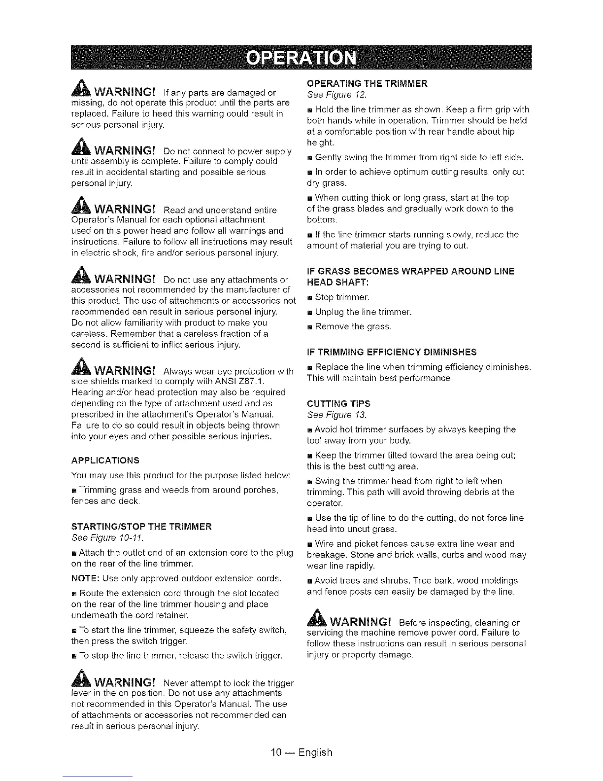 both hands while in operation. Trimmer should be hetd