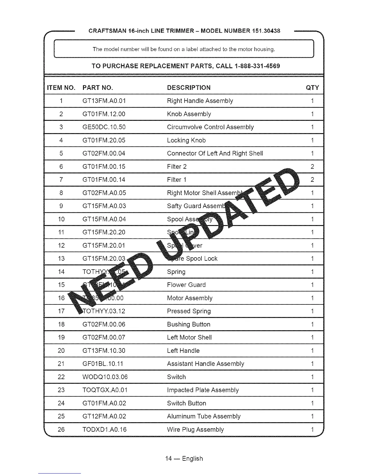 TO PURCHASE REPLACEMENT PARTS, CALL 1-888-331-4569