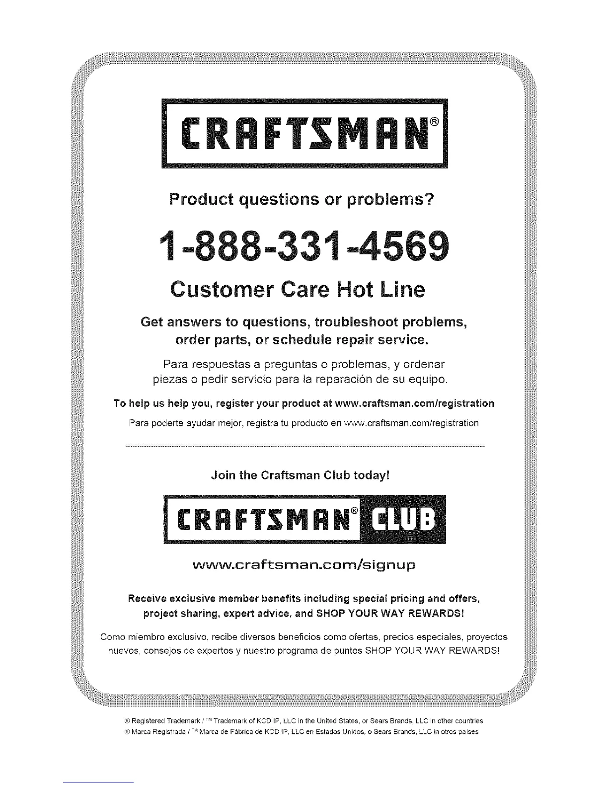 To help us help you, register your product at www.craftsman.com/registration