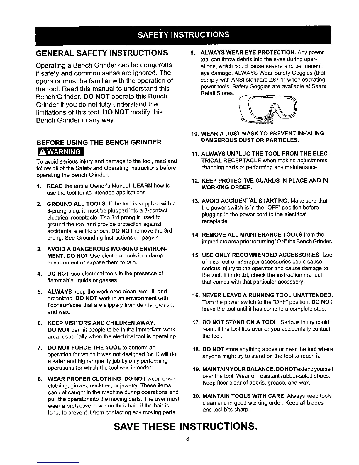 power tools. Safety Goggles are available at Sears