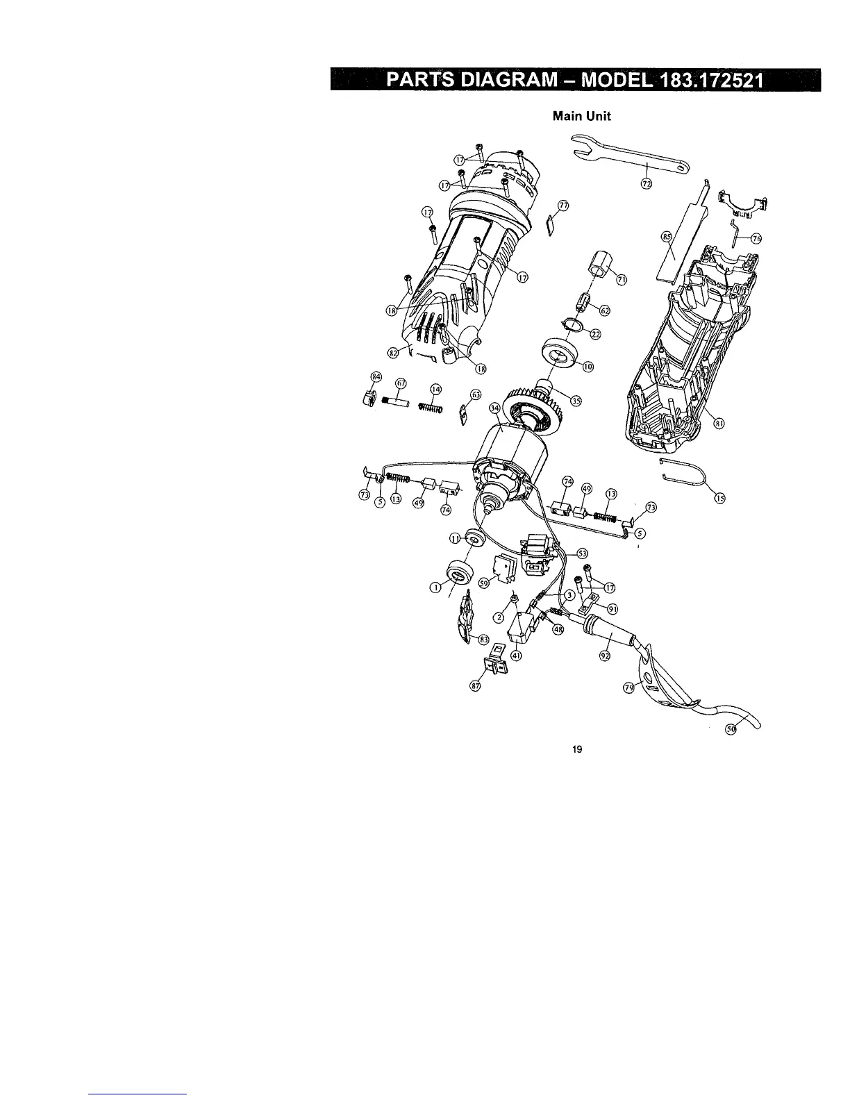 Craftsman 183.172521 - Main Unit Parts Diagram; Main Unit Component Diagram