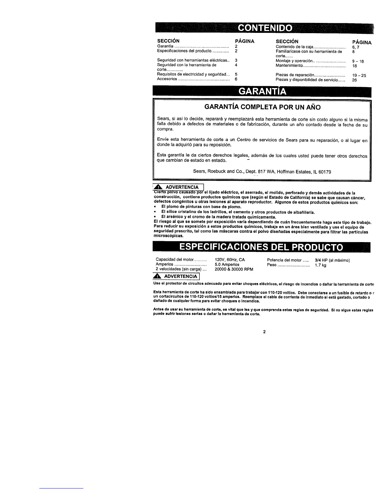Sears, si asi Io decide, reparar_ y reemplazar_ esta herramienta de corte sin costo alguno si la misma