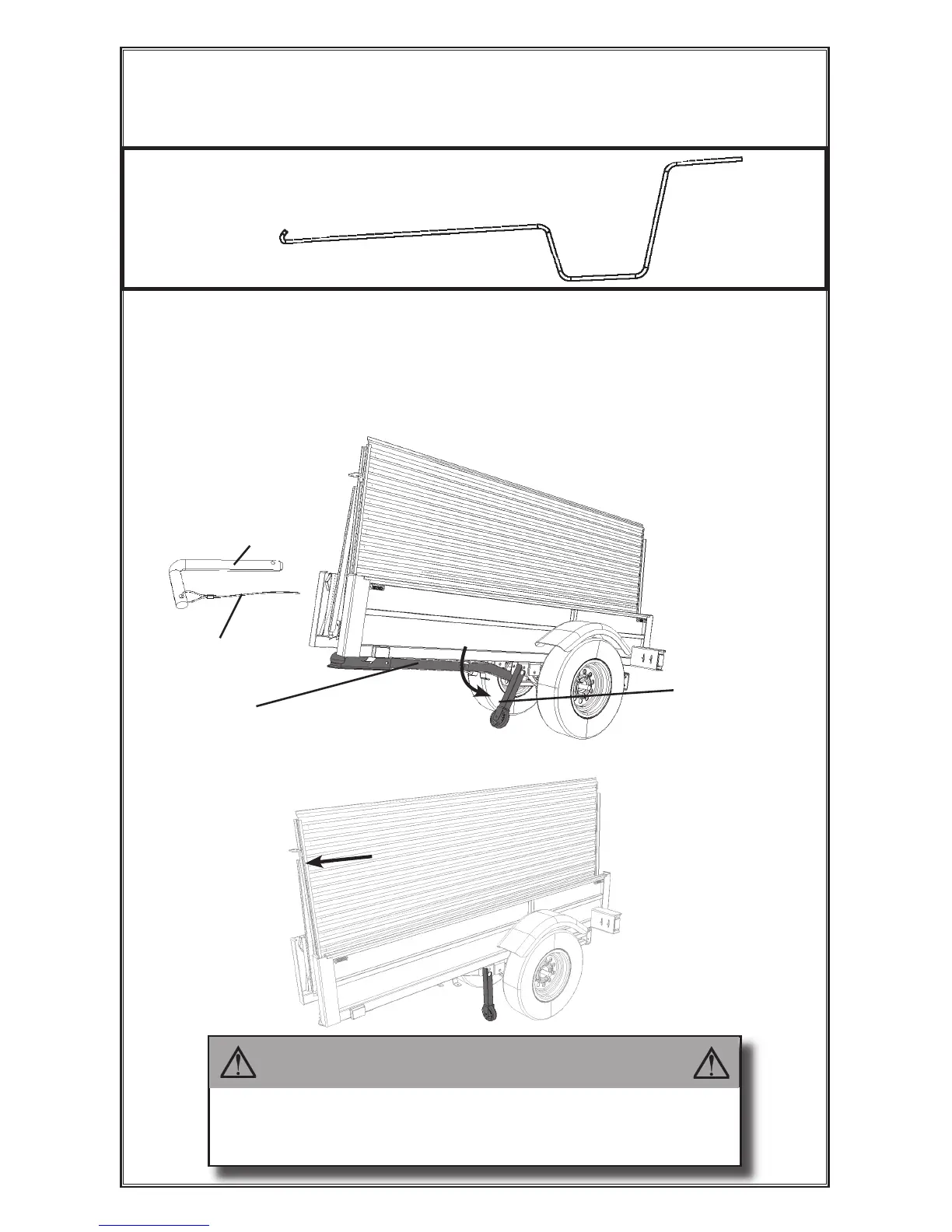 Do NOT tow trailer in folded position. Trailer will tip and