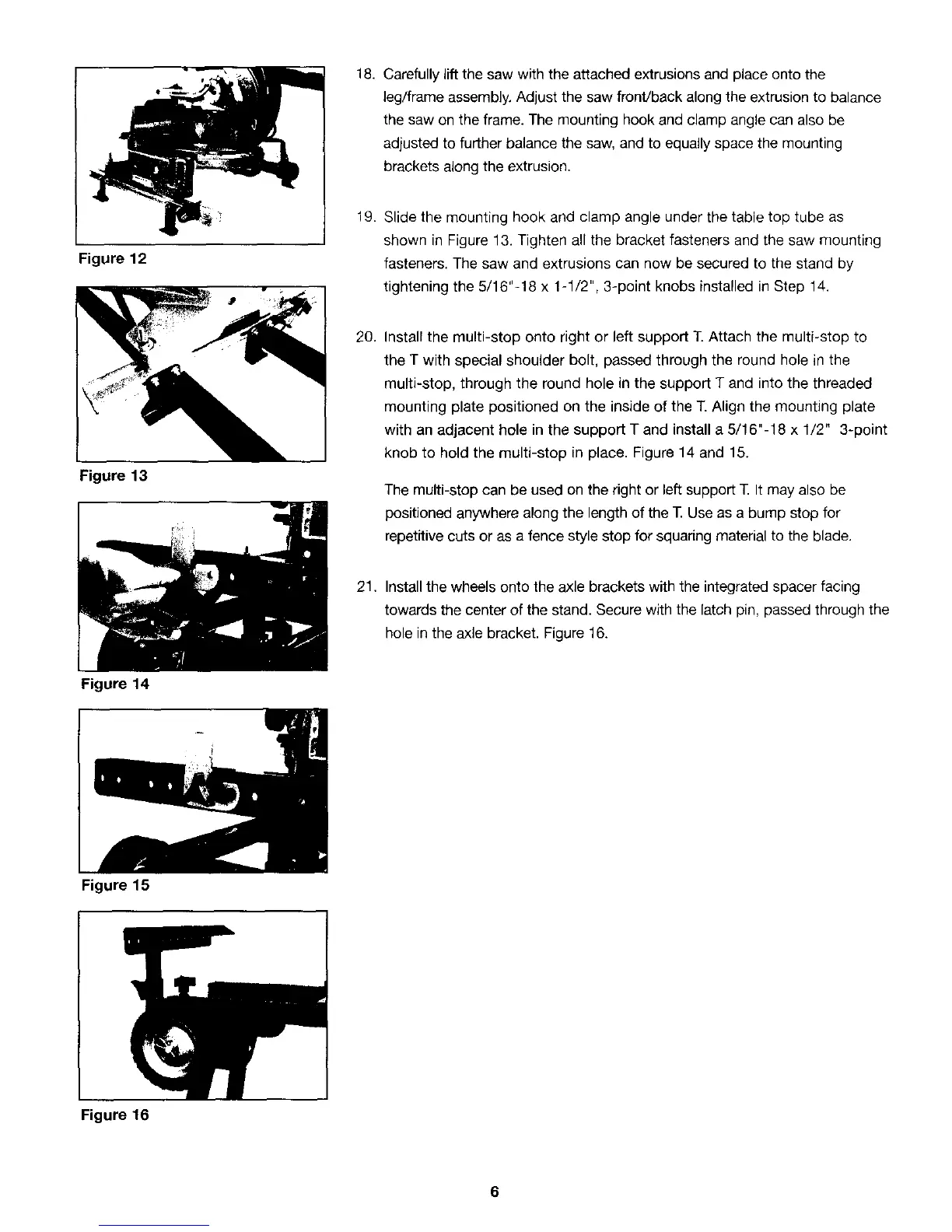 shown in Figure 13. Tighten all the bracket fasteners and the saw mounting
