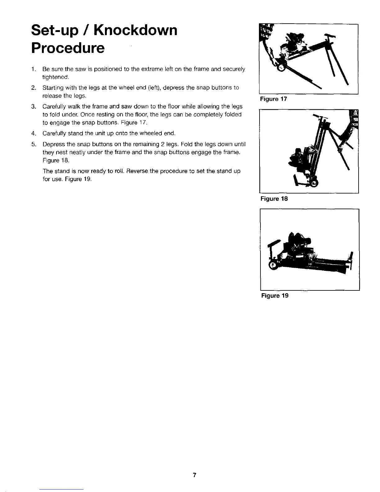 1. Be sure the saw is positioned to the extreme left on the frame and securely