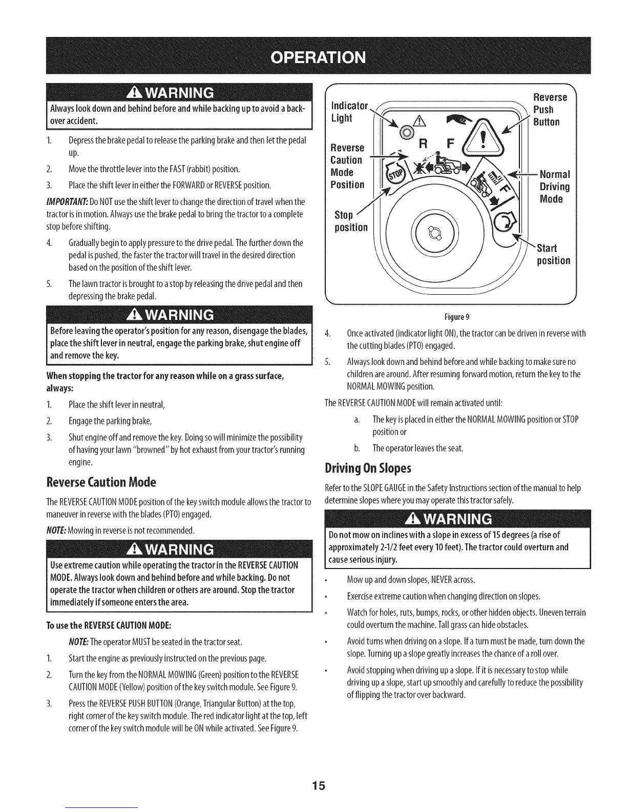 MODE.Alwayslookdownand behindbeforeandwhile backing.Donot