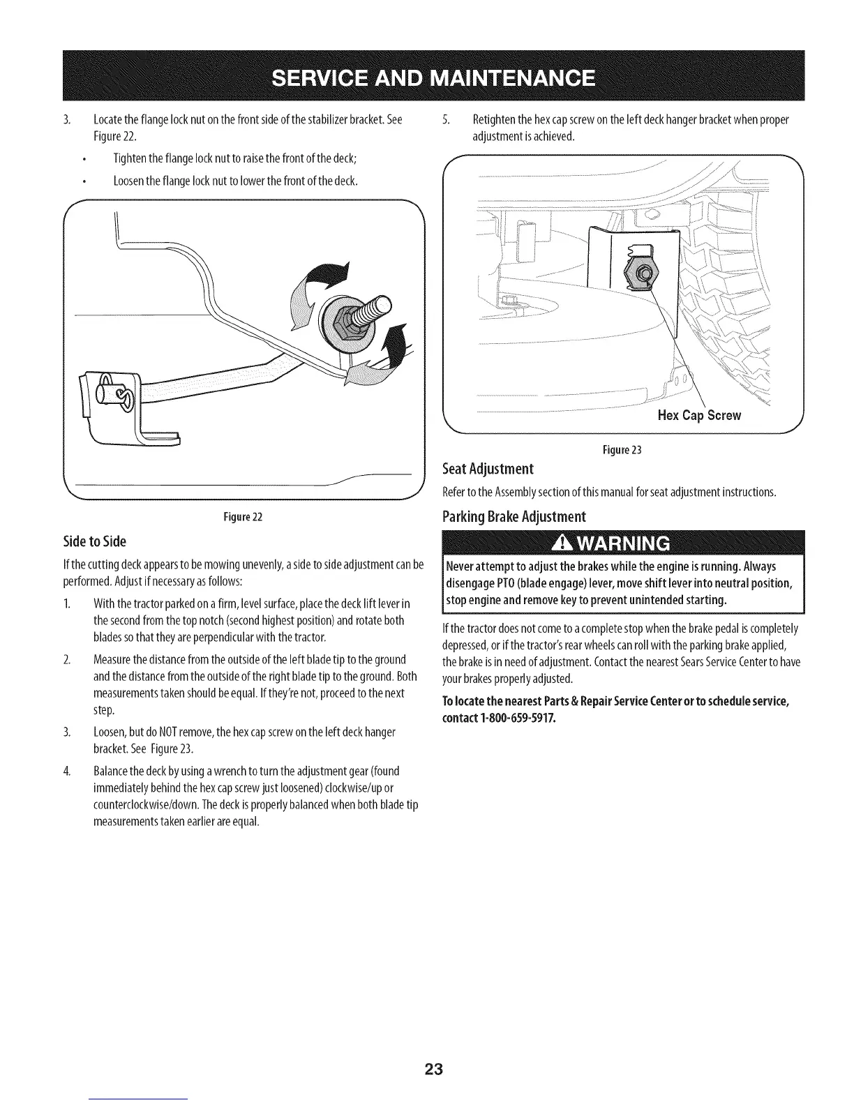 If thecuttingdeckappearsto bemowingunevenly,asideto sideadjustmentcanbe