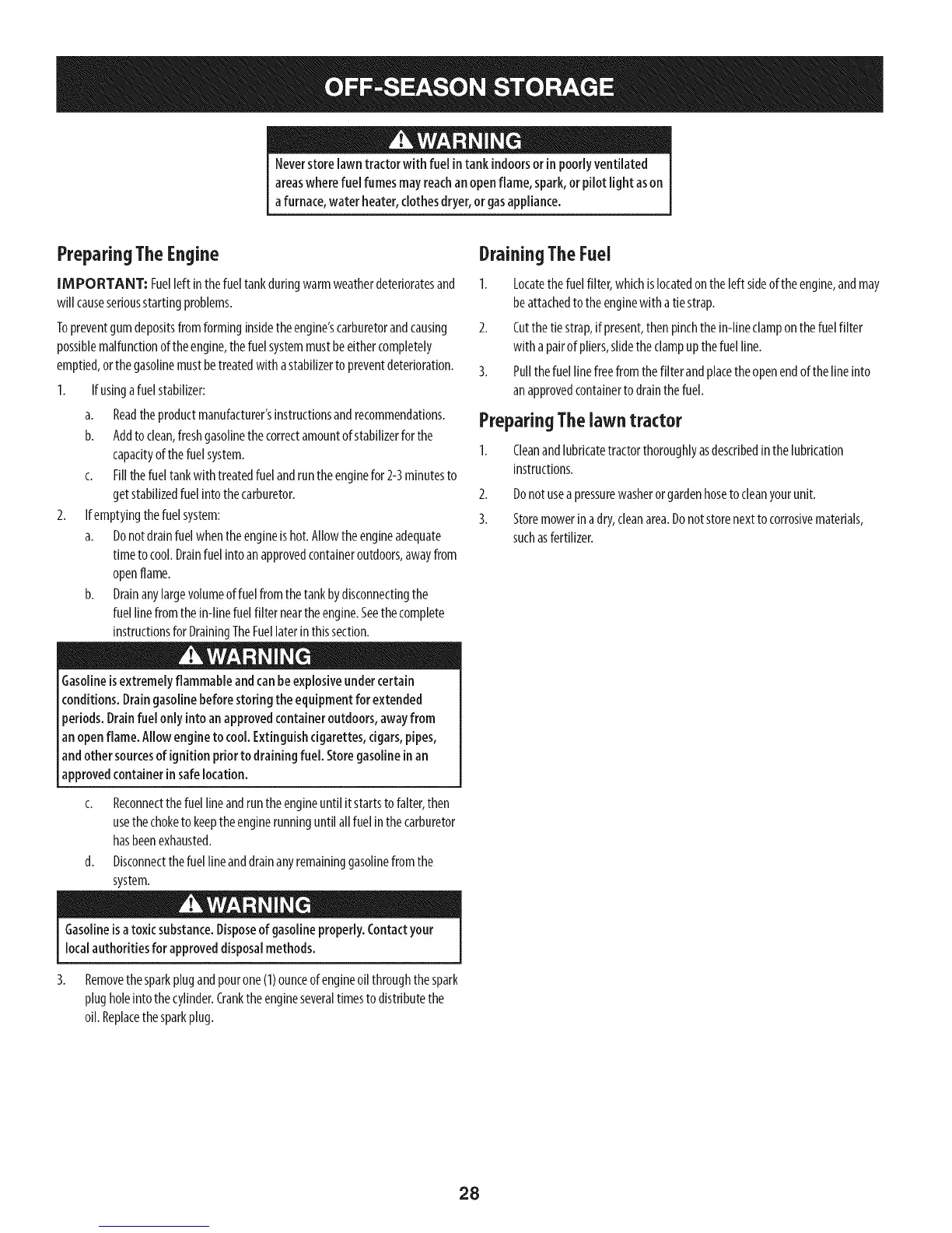 Neverstore lawn tractorwith fuelintankindoorsor inpoorlyventilated