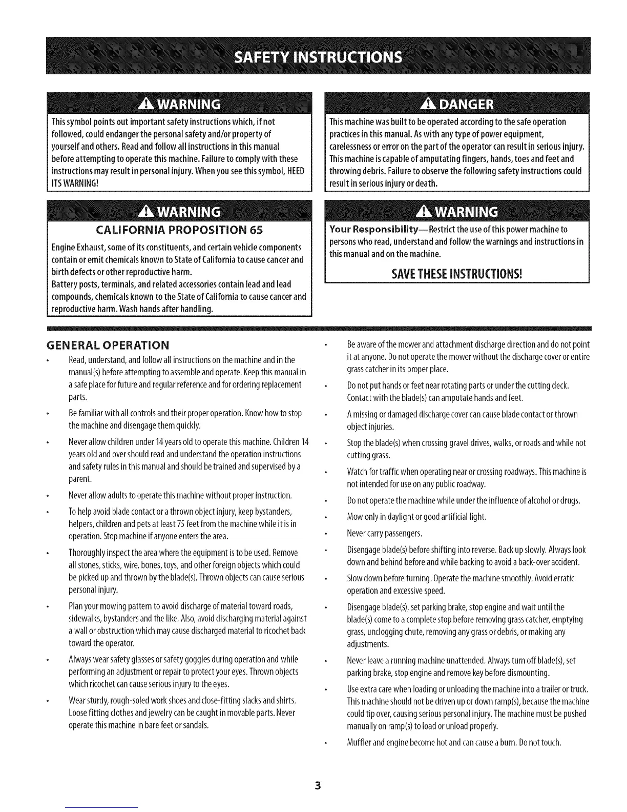 throwingdebris.Failureto observethefollowing safety instructionscould