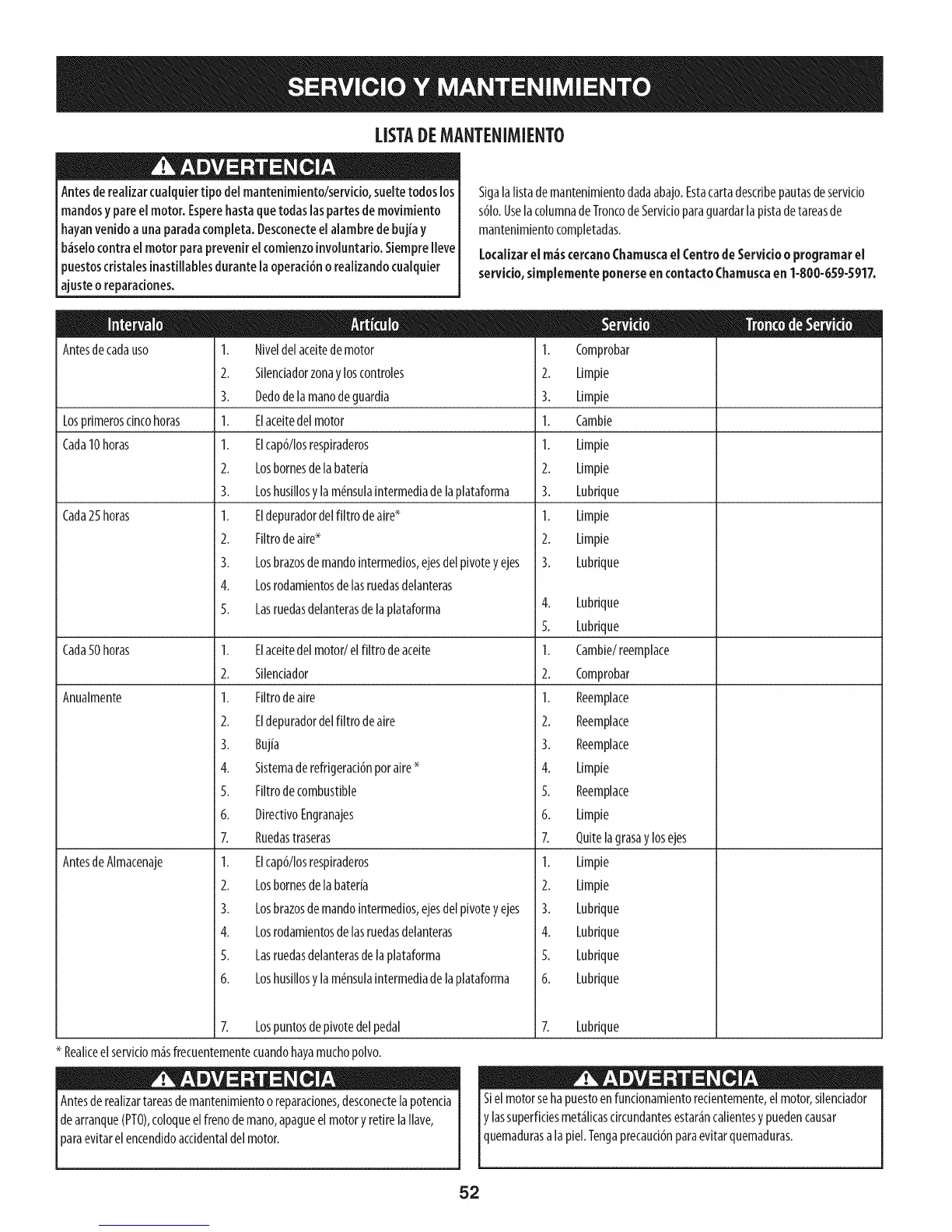 Sigalalistademantenimientodadaabajo.Estacartadescribepautasdeservicio
