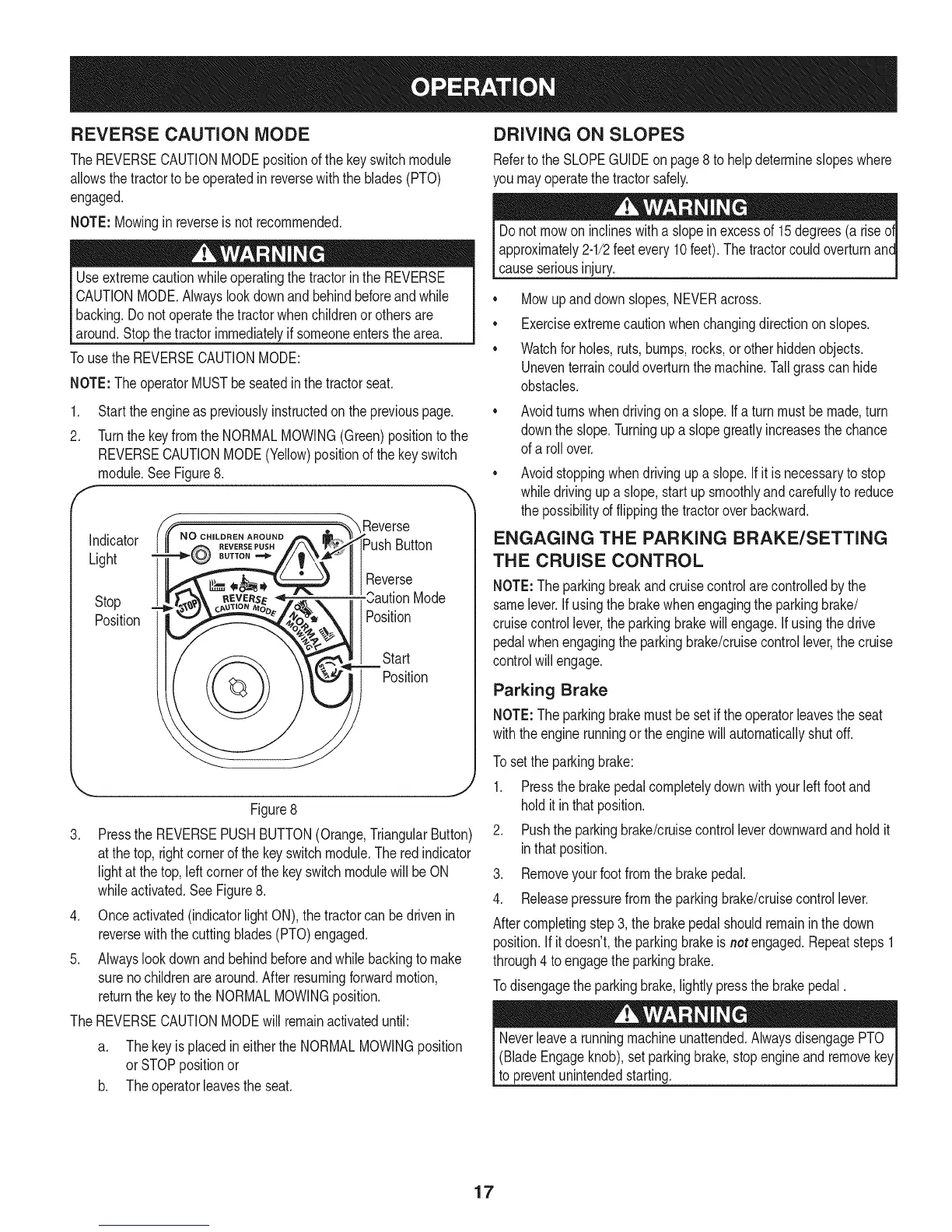 reversewiththecuttingblades(PTO)engaged.