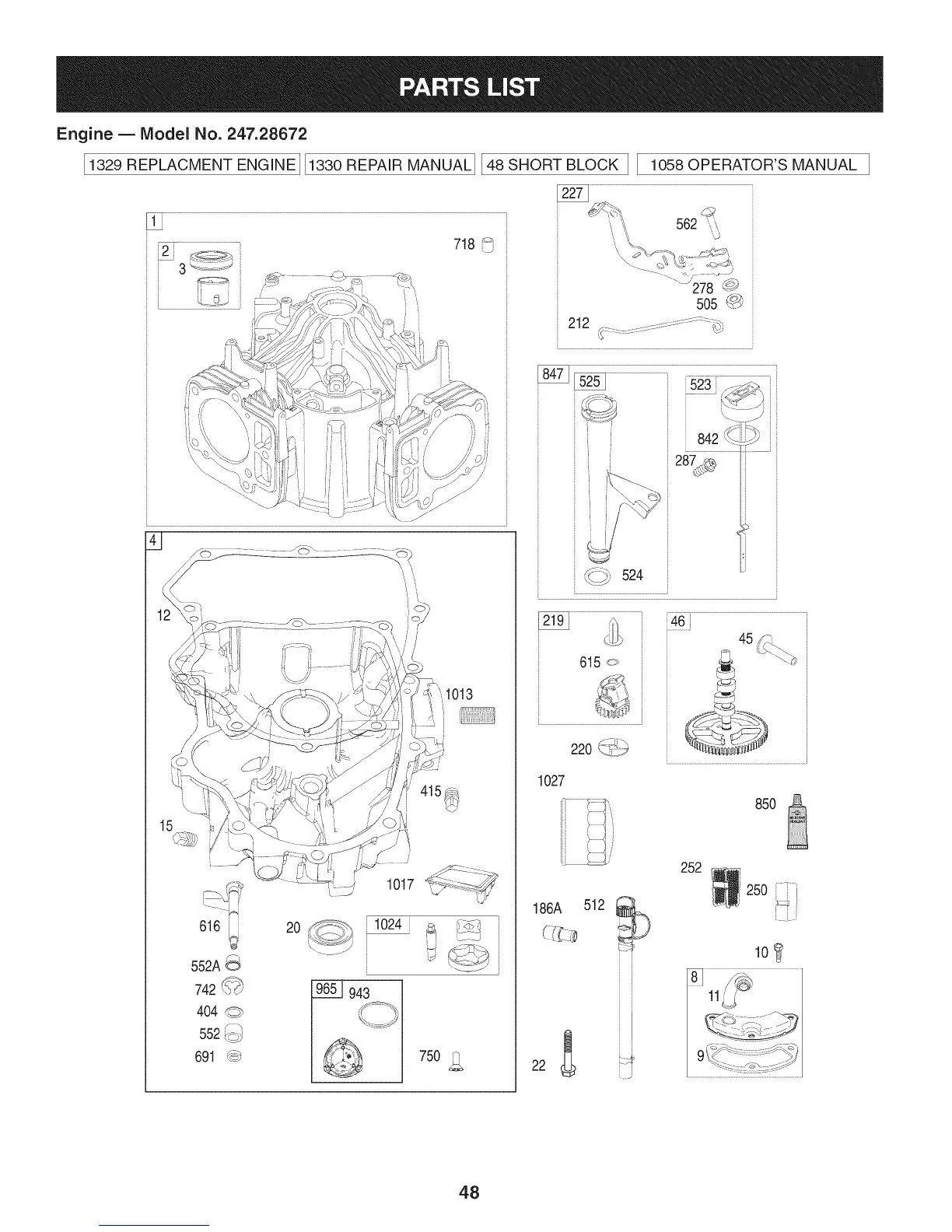 I1329 REPLACMENT ENGINE] I1330 REPAIR MANUAL1148SHORT BLOCK I lO58 OPERATOR'S MANUAL I