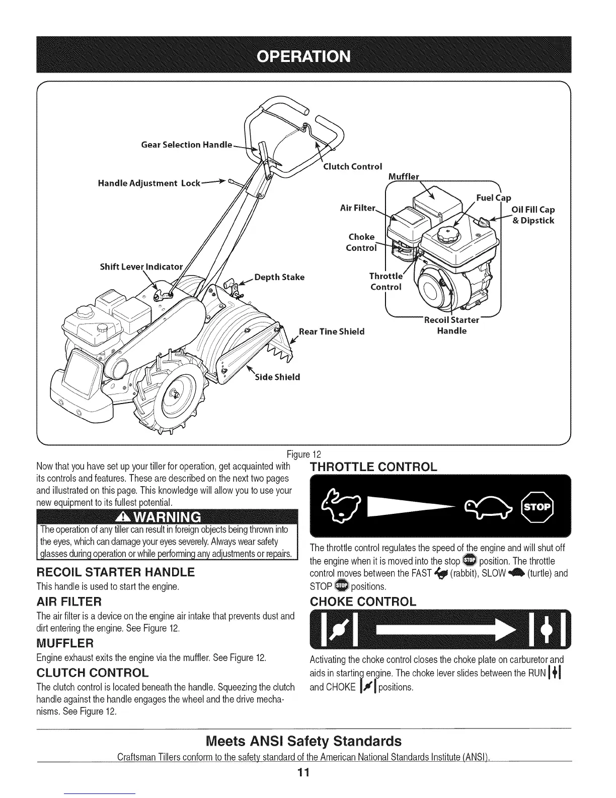 CraftsmanTillersconformtothe safetystandardoftheAmericanNationalStandardsInstitute(ANSI)