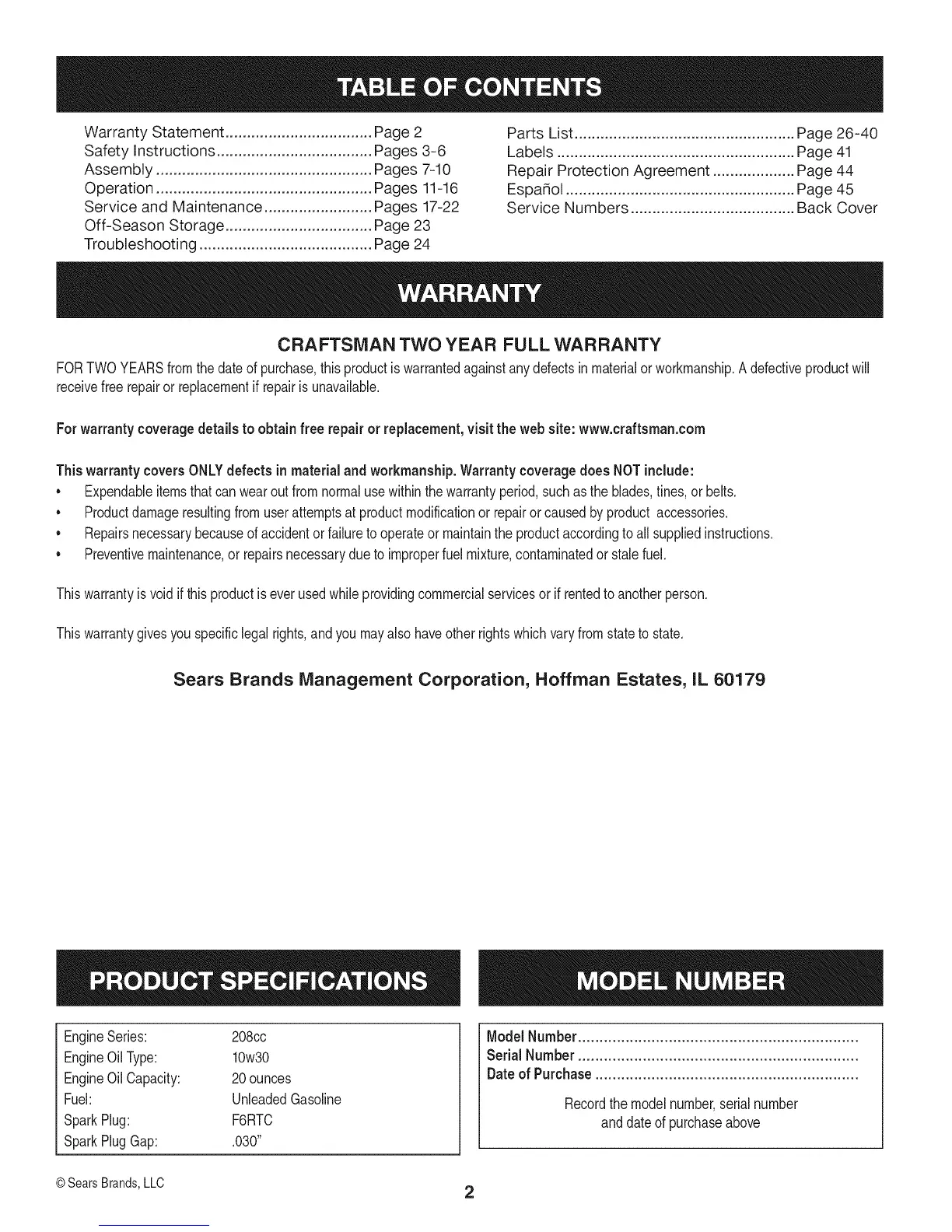 CRAFTSMAN TWO YEAR FULL WARRANTY