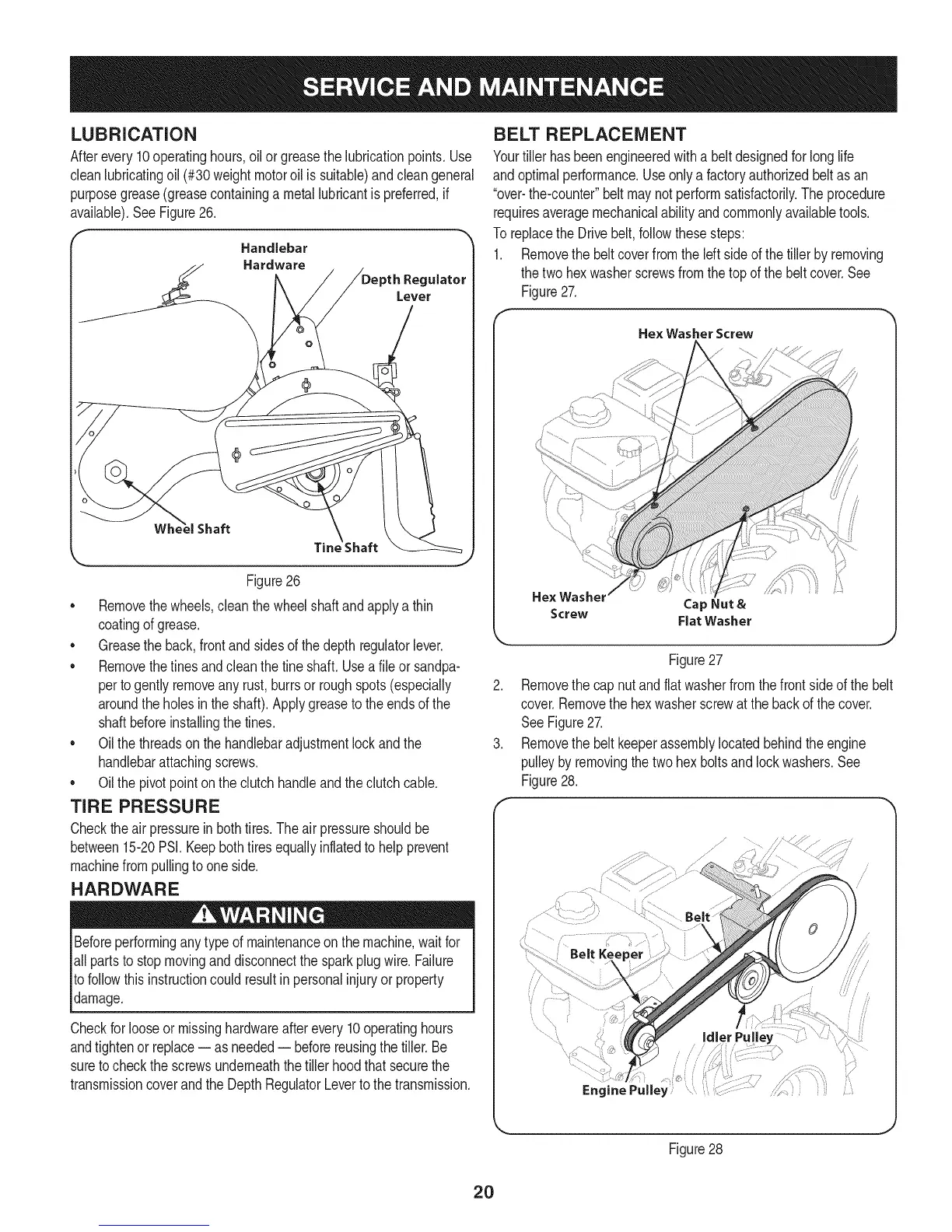 1. Removethebeltcoverfromtheleft sideofthe tillerby removing