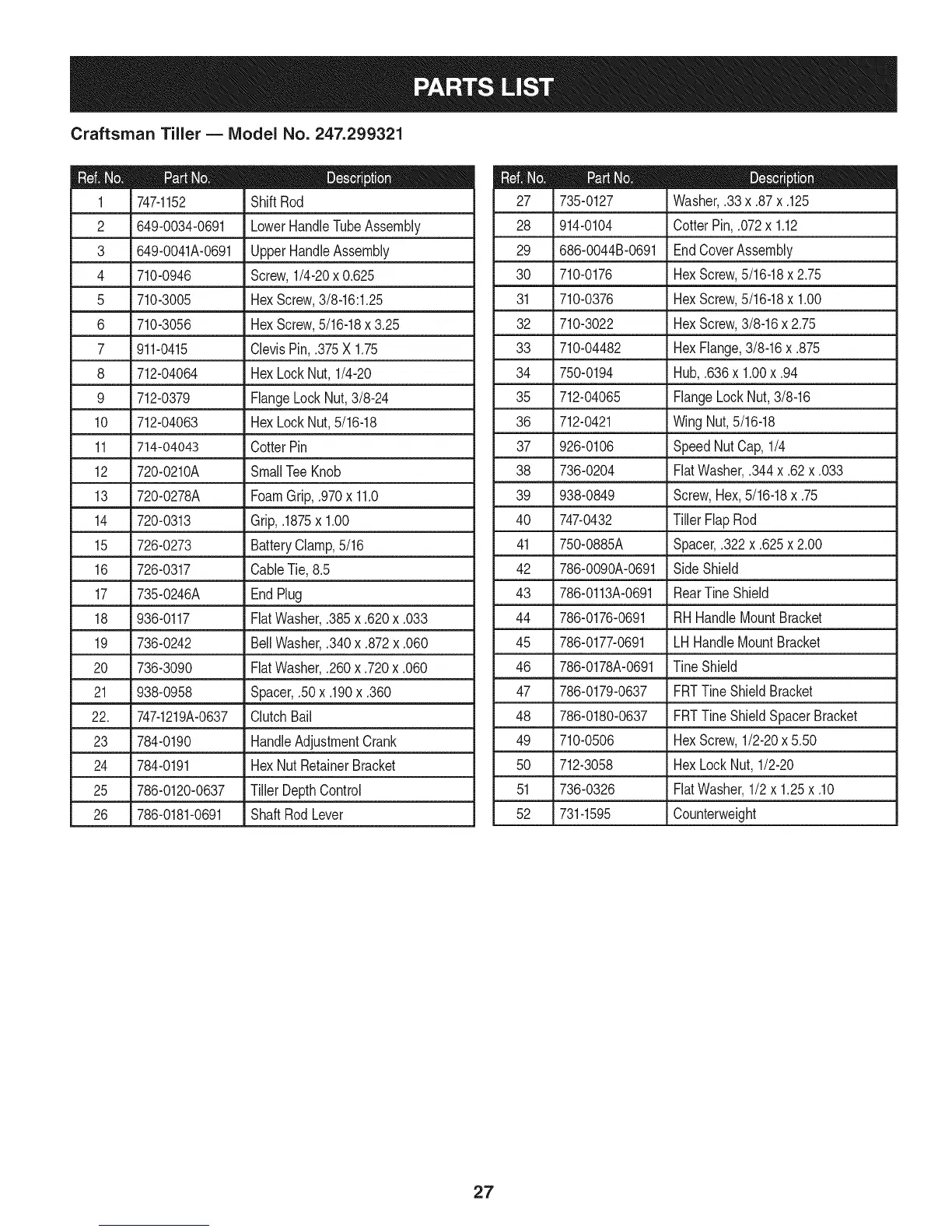Craftsman Tiller B Model No. 247.299321