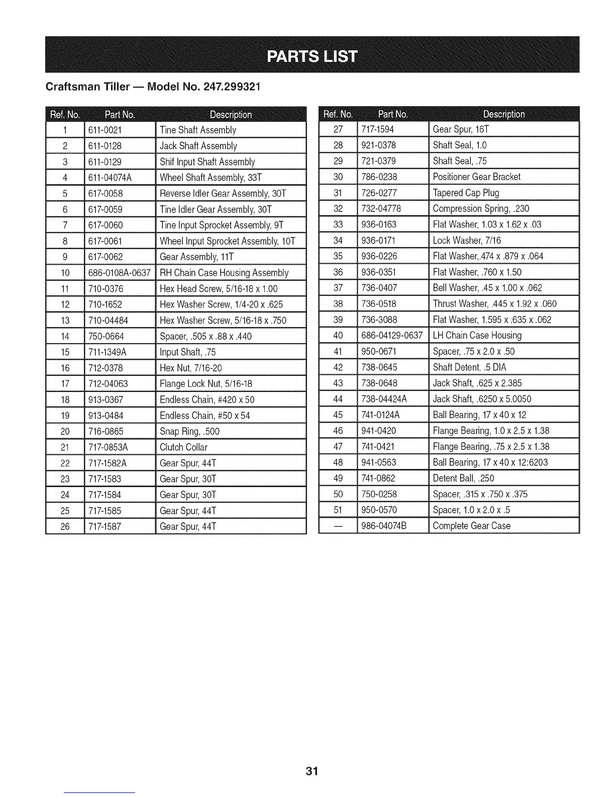 Craftsman Tiller B IViodel No. 247.299321