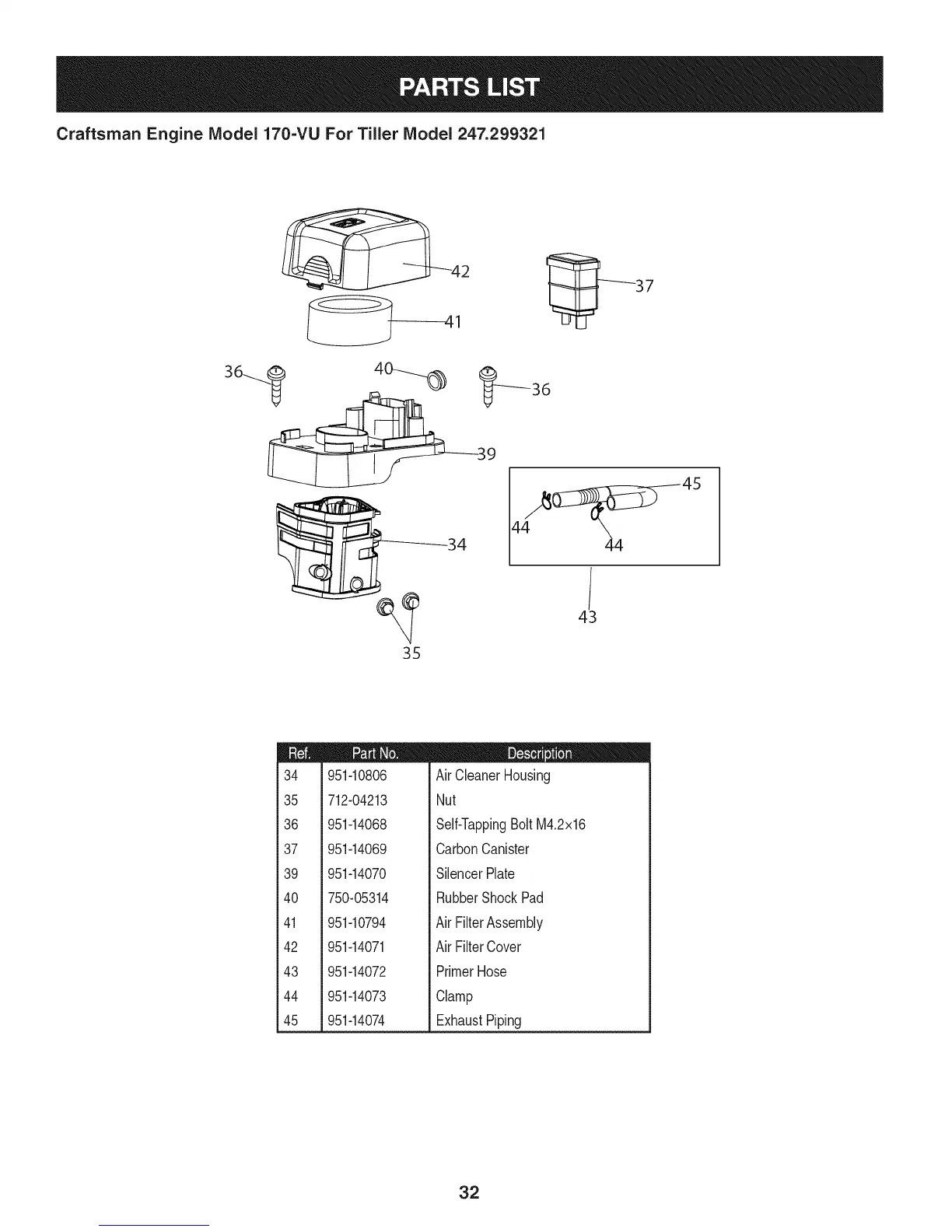 Craftsman 247.299321 - Craftsman Engine Model 170-VU for Tiller Model 247.299321