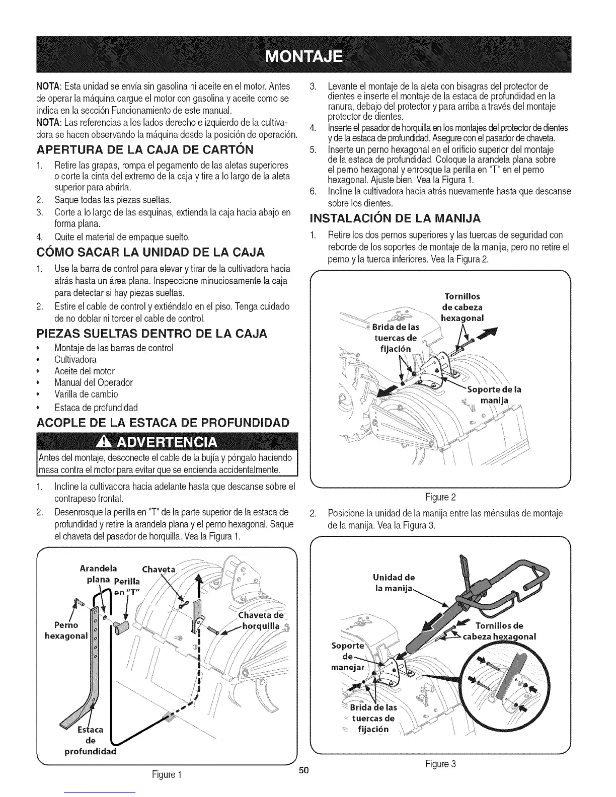 1. Usela barradecontrolparaelevarytirar dela cultivadorahacia