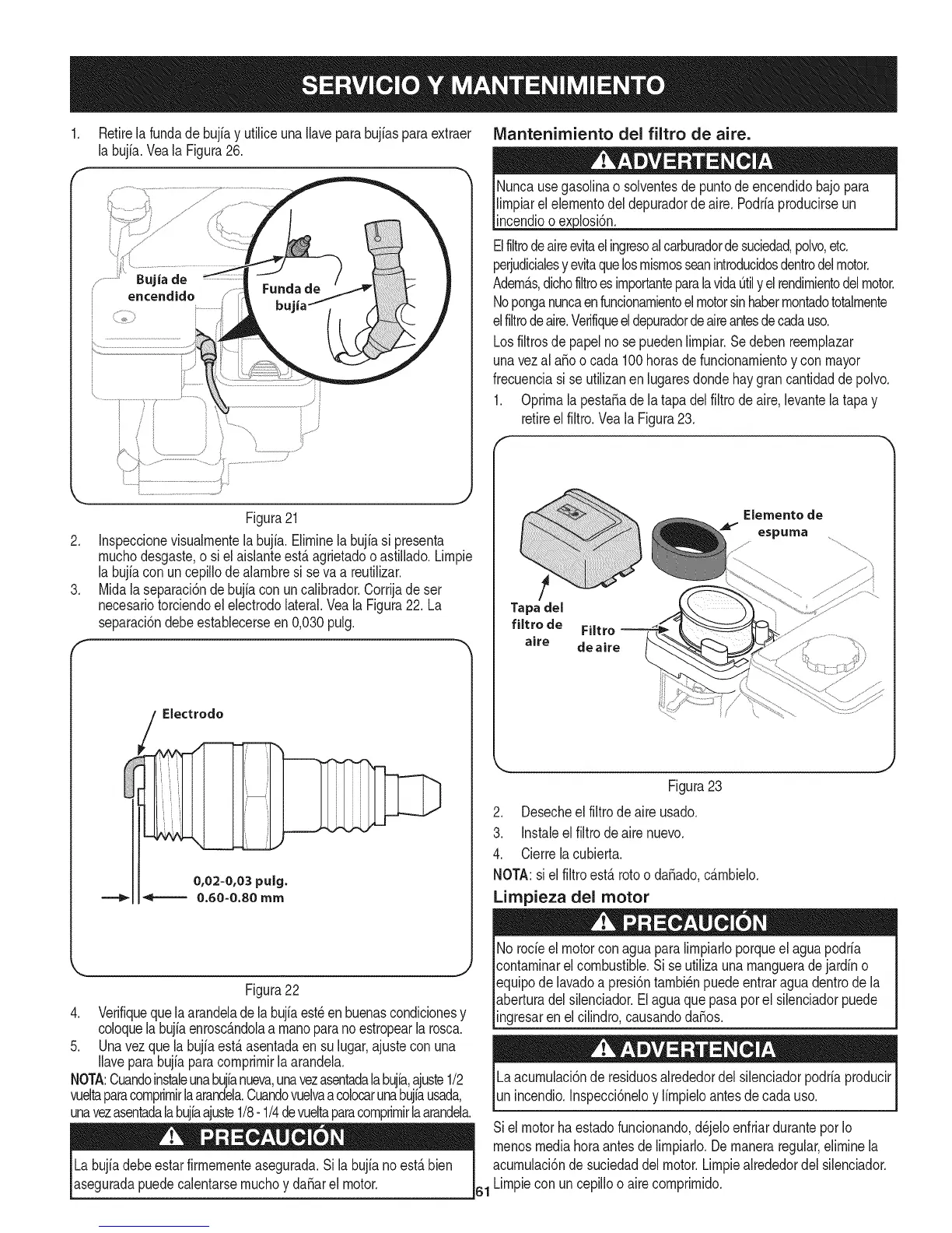 Inspeccionevisualrnentela bujfa.Elirninela bujfasi presenta