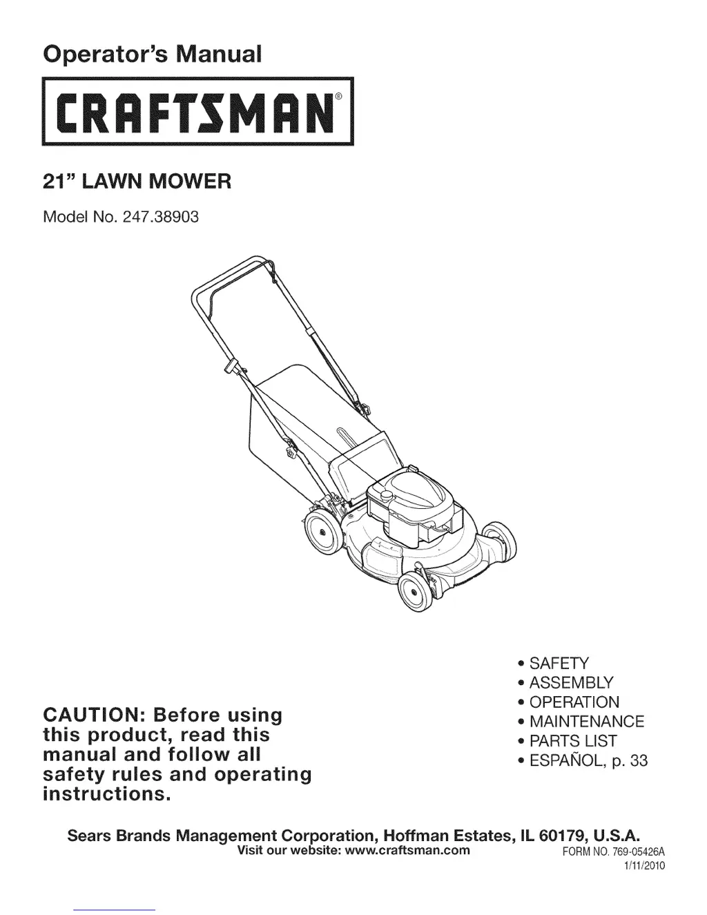 There are several reasons why your Craftsman Lawn Mower might not start. It could be due to a disengaged blade control, so ensure that the blade control is engaged. Another common cause is a disconnected spark plug boot; check and connect the wire to the spark plug boot. Also, the fuel tank might be empty or contain stale fuel, so fill the tank with clean, fresh gasoline. A faulty spark plug can also prevent starting; in this case, clean, adjust the gap, or replace the spark plug. If the engine is flooded, wait a few minutes before attempting to restart it. Finally, a blocked fuel line can cause this issue, in which case you should contact your Sears Parts & Repair Center to have the fuel line cleaned.