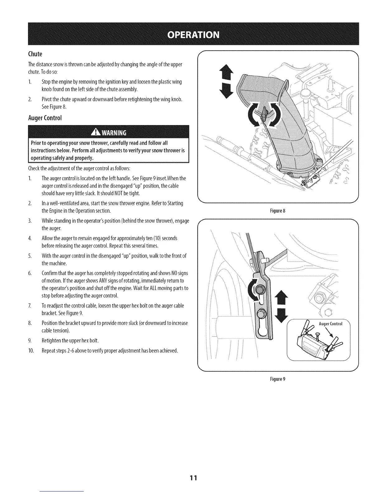 1. Theaugercontrolislocatedontheleft handle.SeeFigure9inset.Whenthe