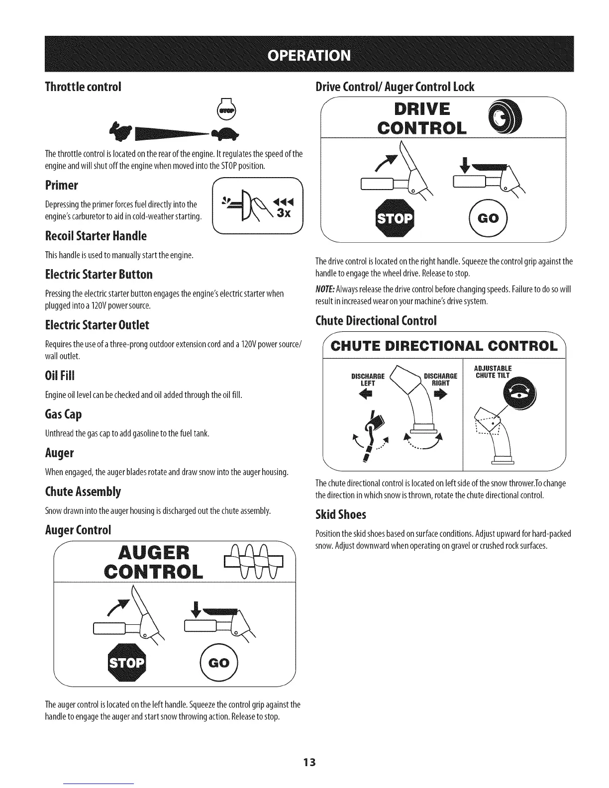 handleto engagetheaugerandstartsnowthrowingaction.Releaseto stop.