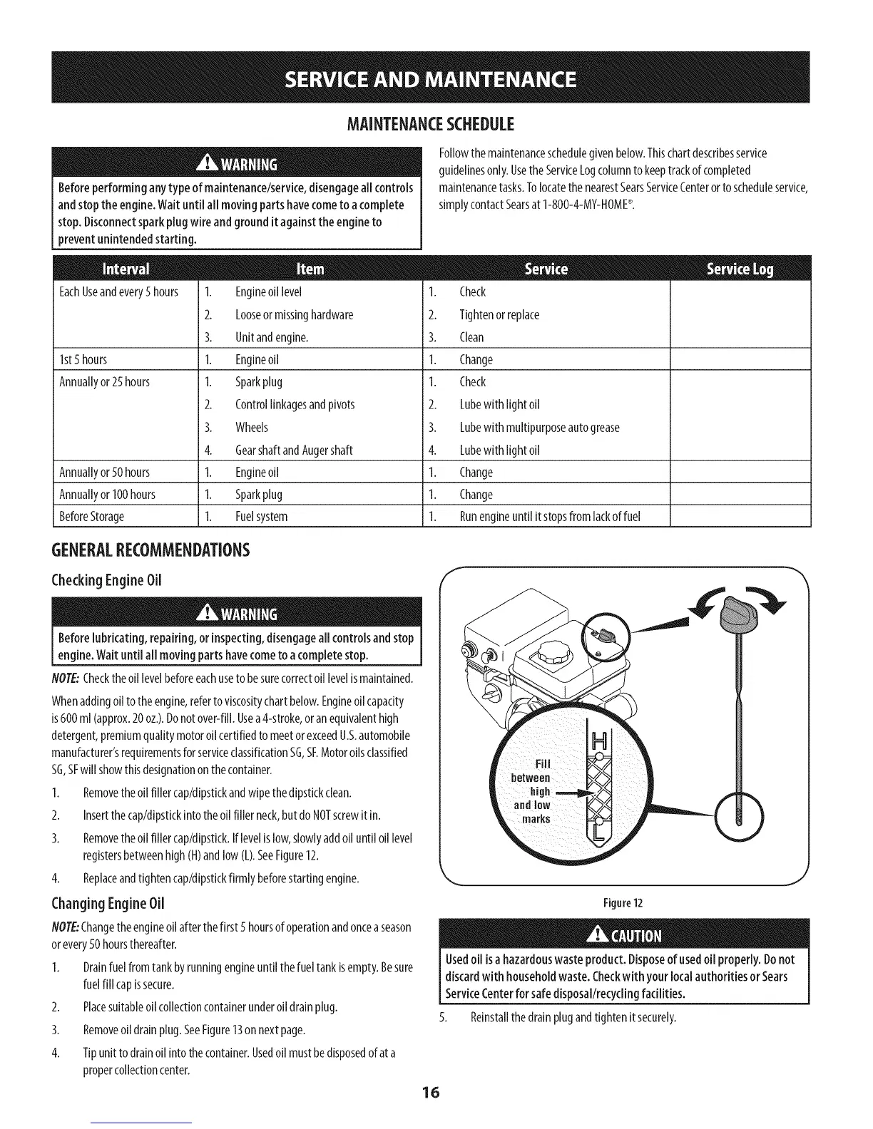 /VOTE."Changetheengineoilafterthefirst5 hoursof operationandoncea season