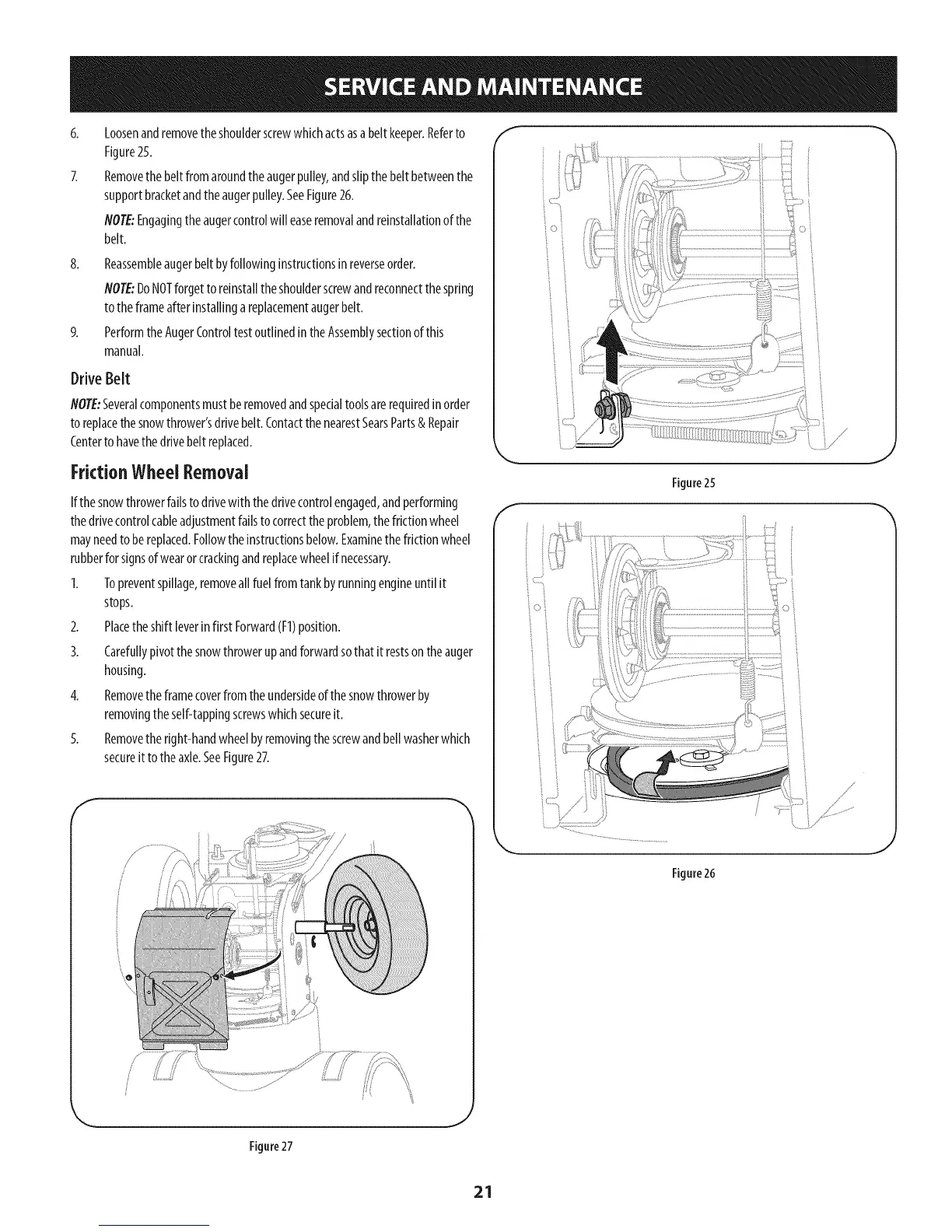 toreplacethesnowthrower'sdrivebelt.ContactthenearestSearsParts& Repair