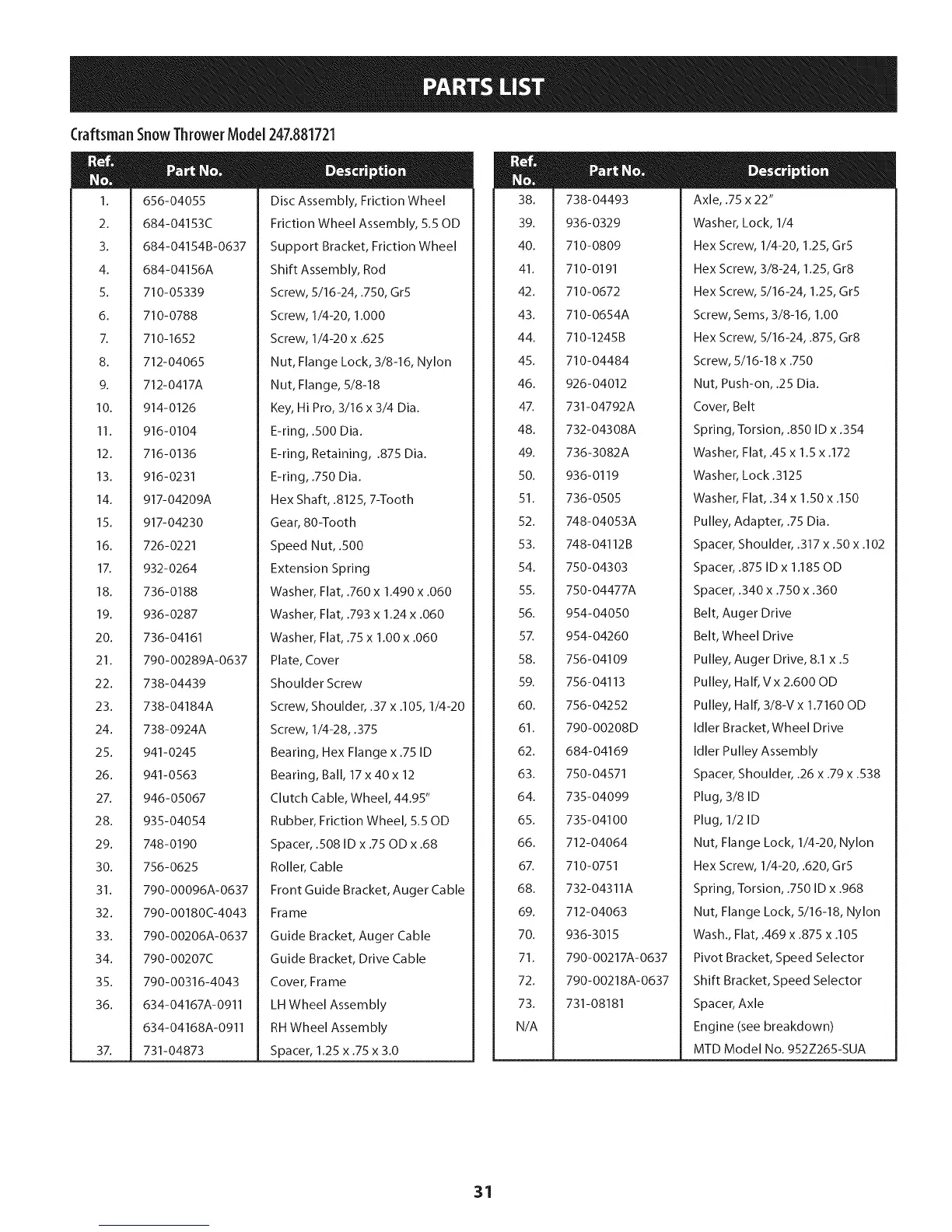 CraftsmanSnowThrowerModel247.881721