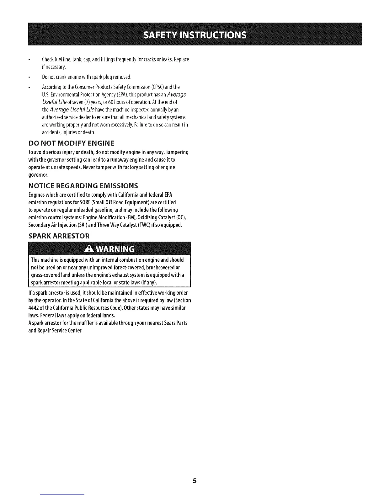 Asparkarrestorfor the muffler is availablethroughyour nearestSearsParts