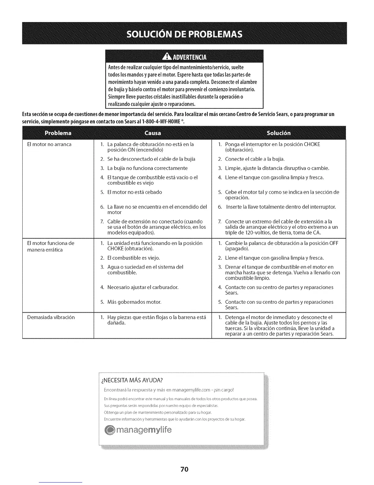 Estasecci6nseocupadecuestionesdemenor importanciadel servido. Paralocalizar el m_scercanoCentrode Servkio Sears,o para programar un