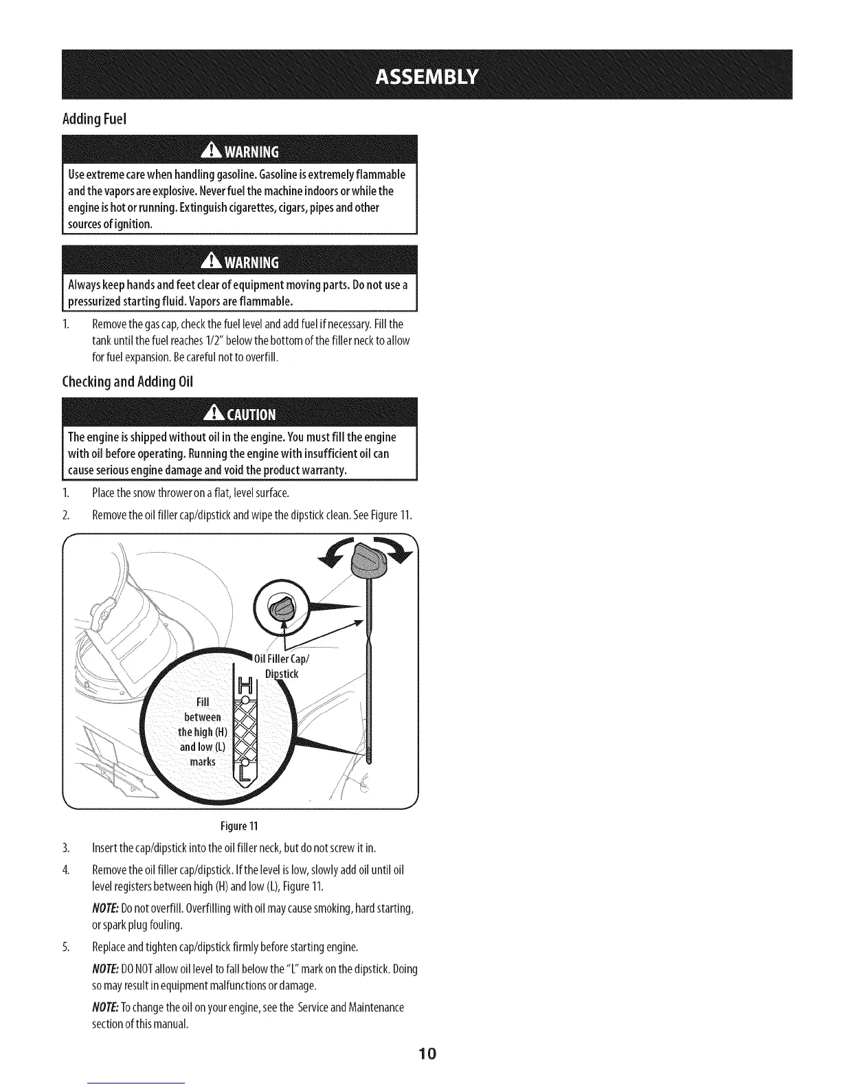 NOTE:Donotoverfill.Overfillingwith oilmaycausesmoking,hardstarting,