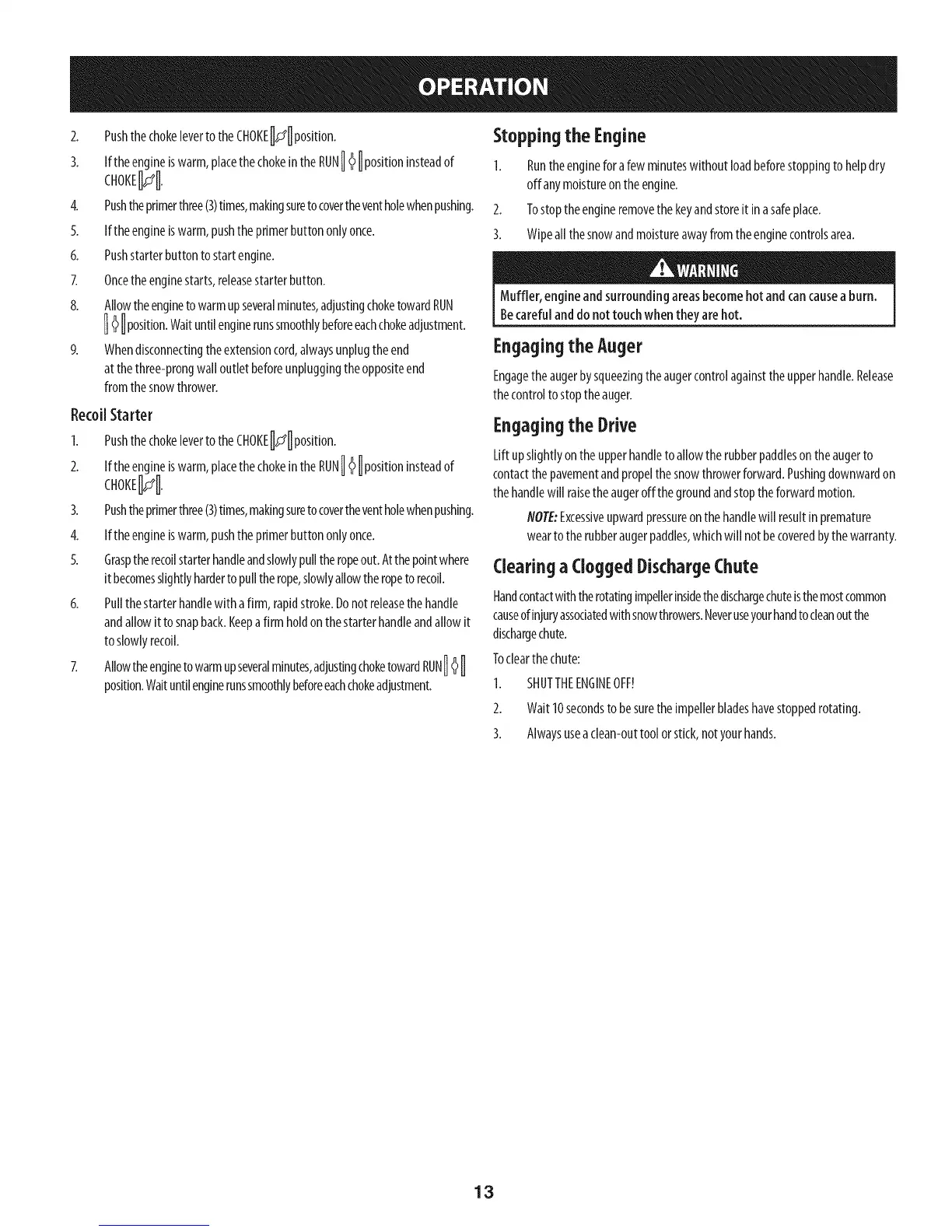 causeofinjuryassociatedwithsnowthrowers.Neveruseyourhandtocleanoutthe