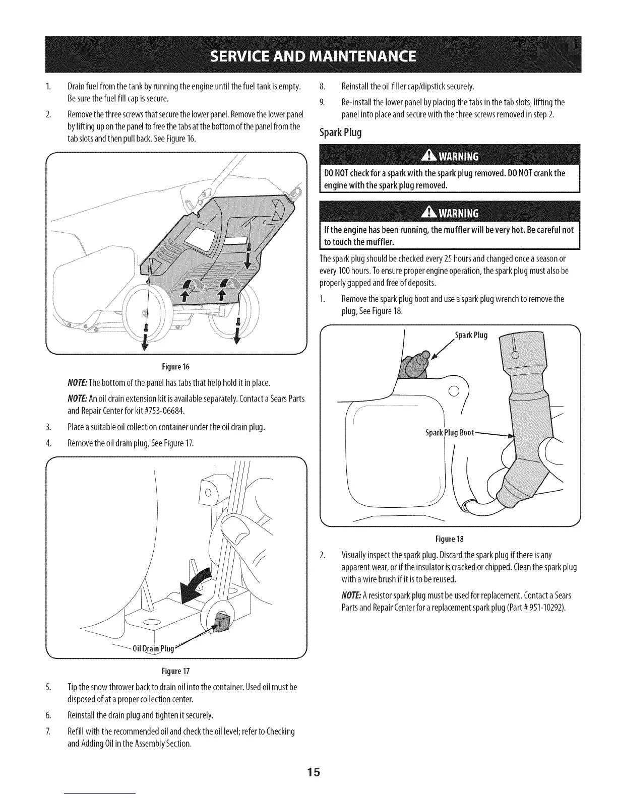 NOTE:Anoil drainextensionkit isavailableseparately.Contacta SearsParts