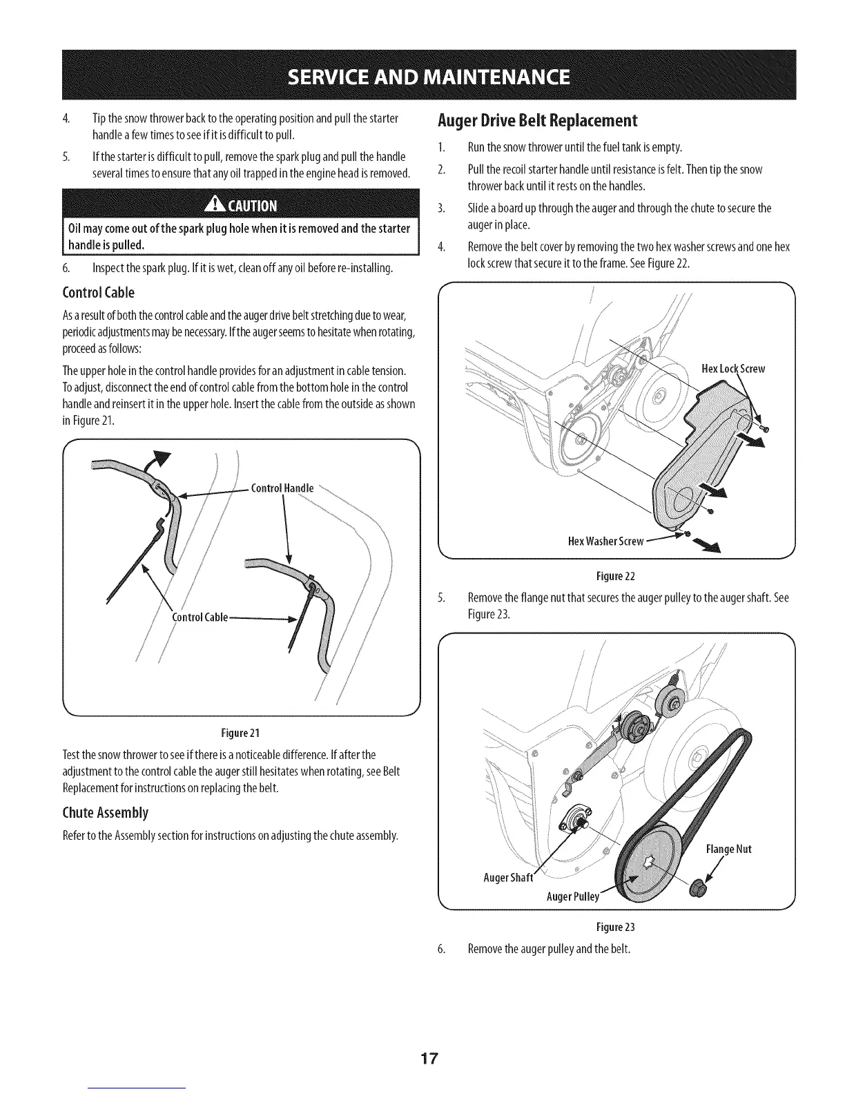 adjustmenttothecontrolcabletheaugerstill hesitateswhenrotating,seeBelt