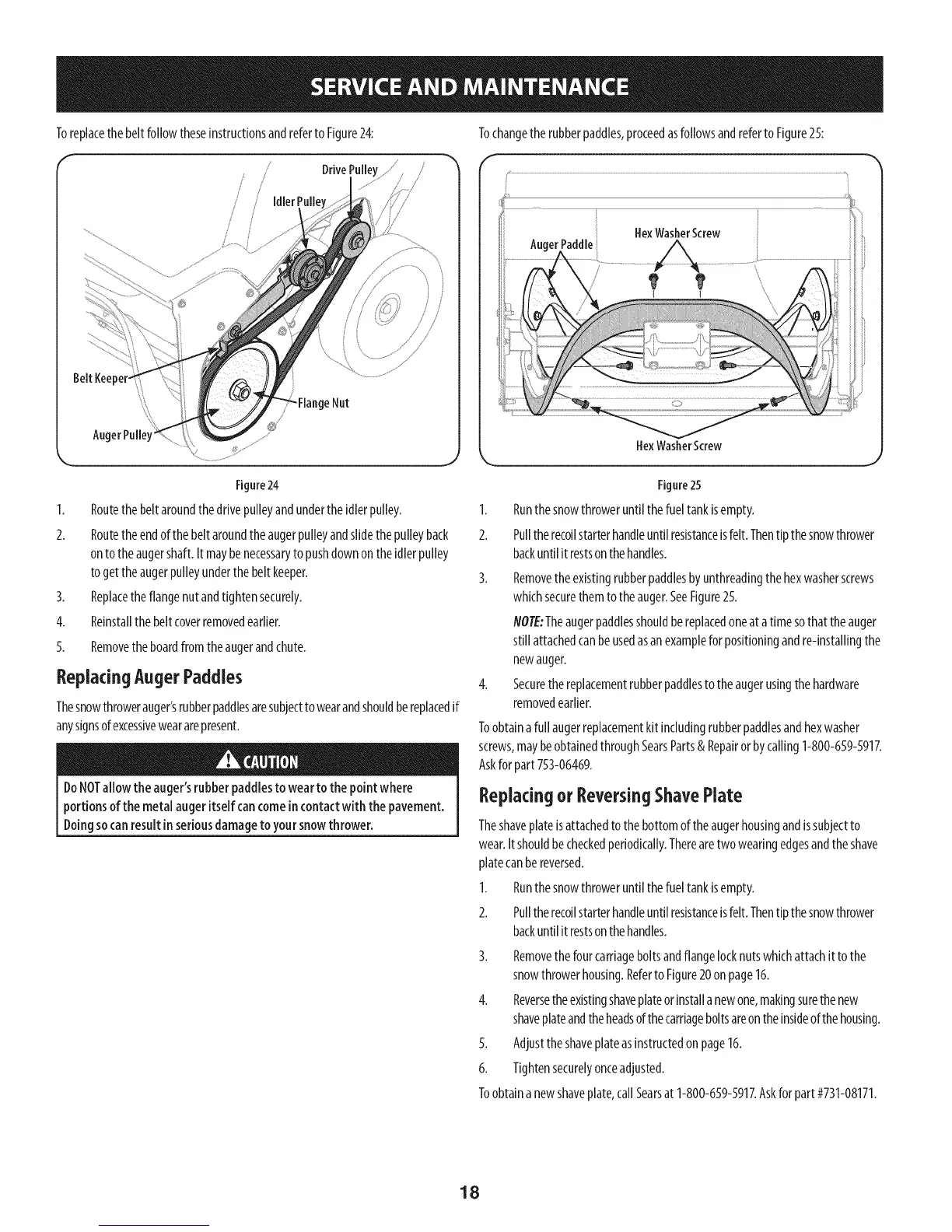 Thesnowthrowerauger'srubberpaddlesaresubjecttowearandshouldbereplacedif
