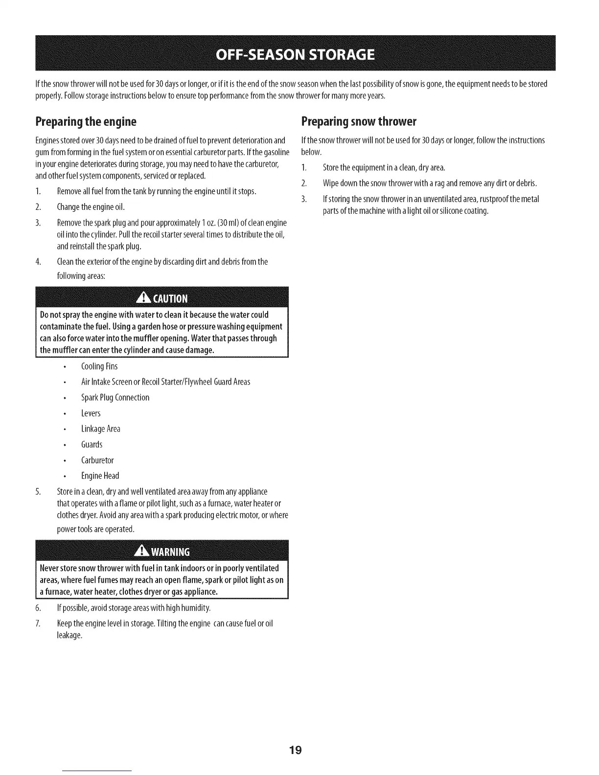 properly.Followstorageinstructionsbelowto ensuretopperformancefromthesnowthrowerformanymoreyears.