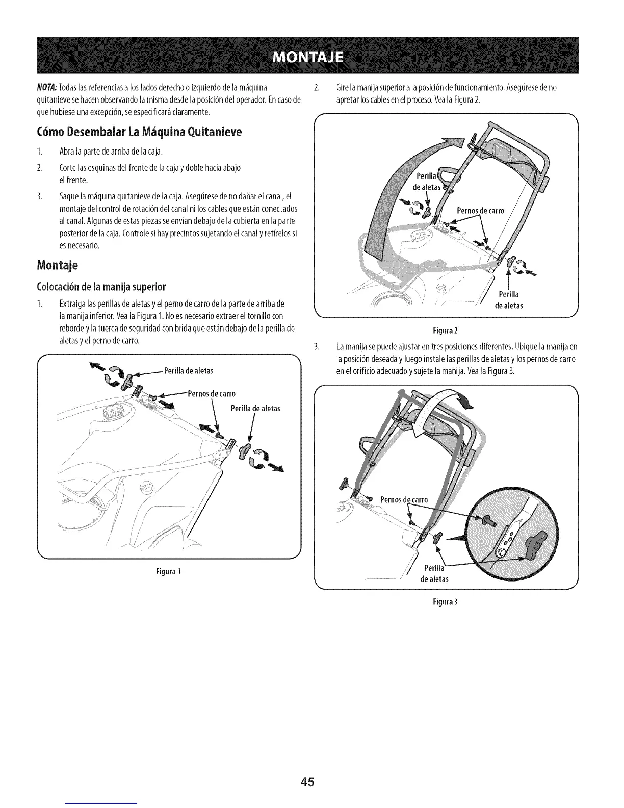 Colocaci6nde la manija superior