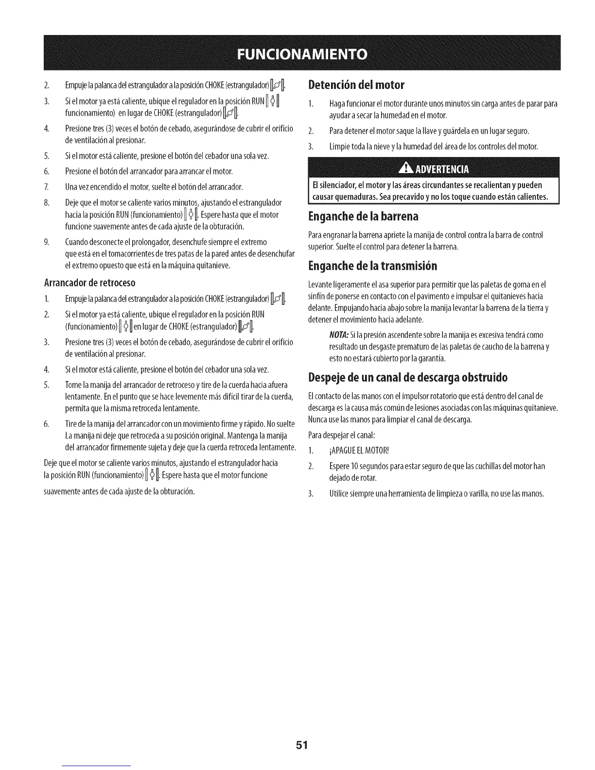 8. Dejequeel motorsecalientevariosminutos,ajustandoelestrangulador