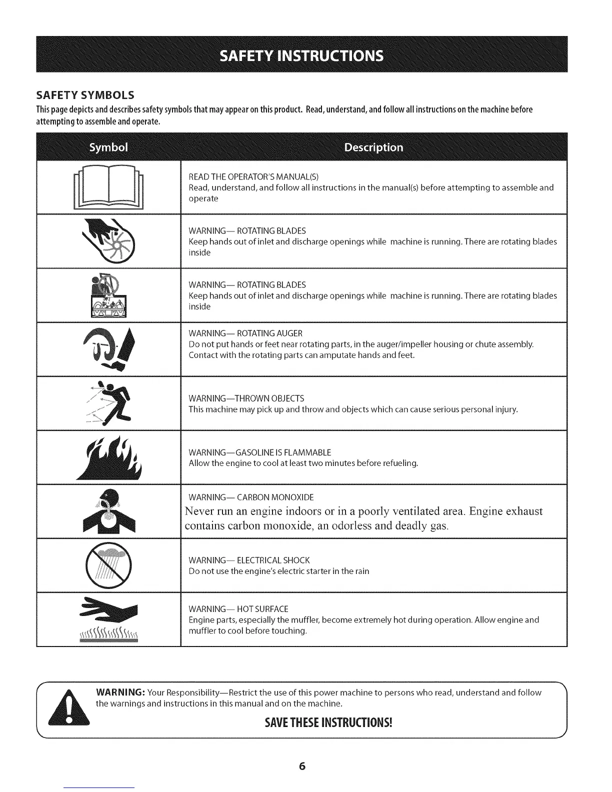 WARNING: Your Responsibility--Restrict the use of this power machine to persons who read, understand and follow