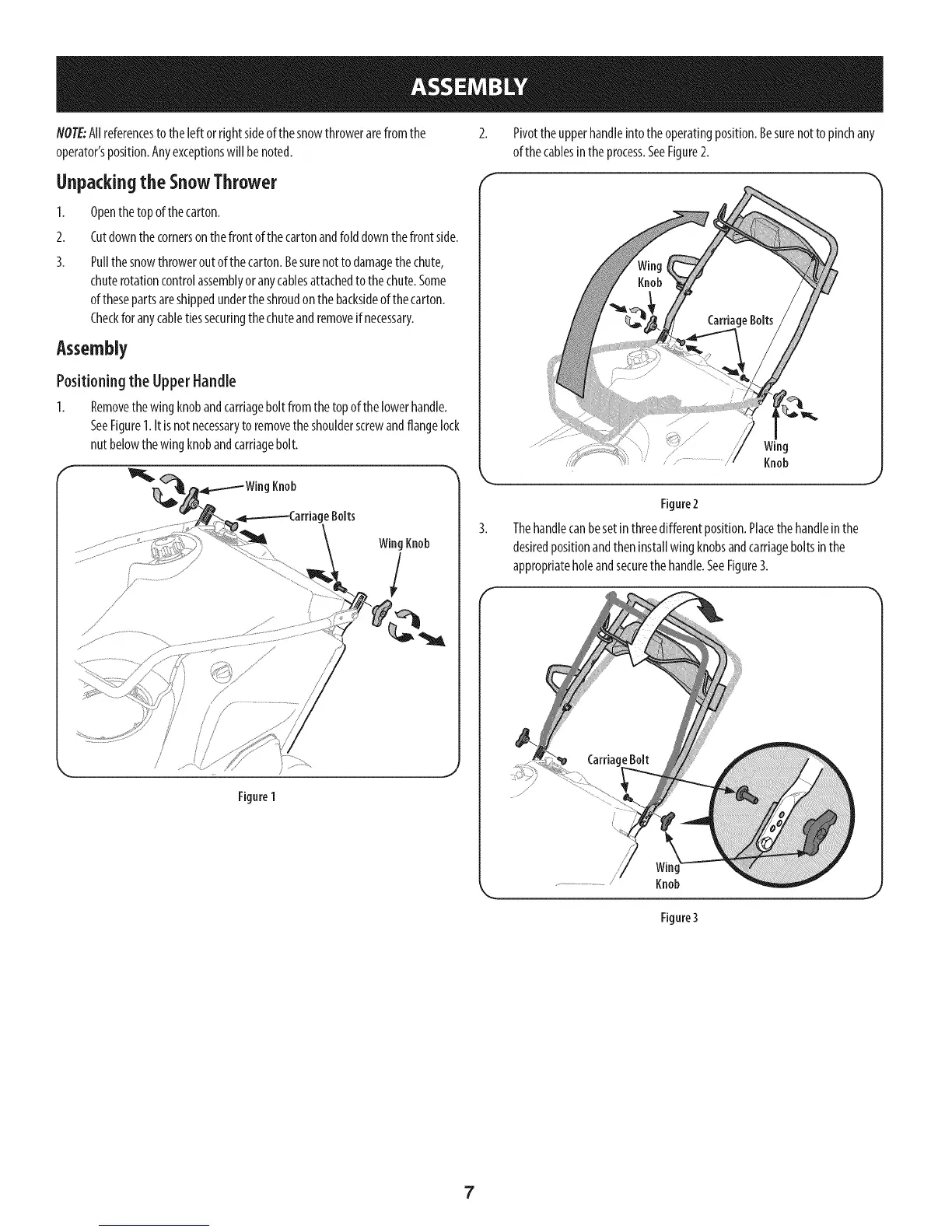 I. Removethewing knobandcarriageboltfromthetopof thelowerhandle.