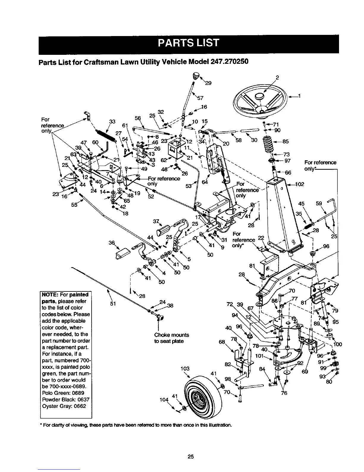 Parts List for Craftsman Lawn Utility Vehicle Model 247.270250
