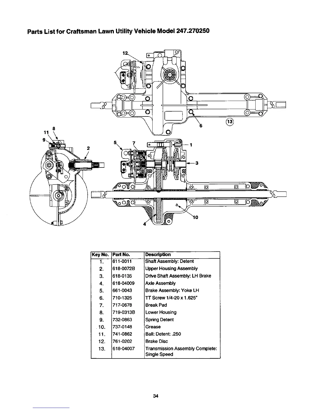 Parts List for Craftsman Lawn Utility Vehicle Model 247.270250