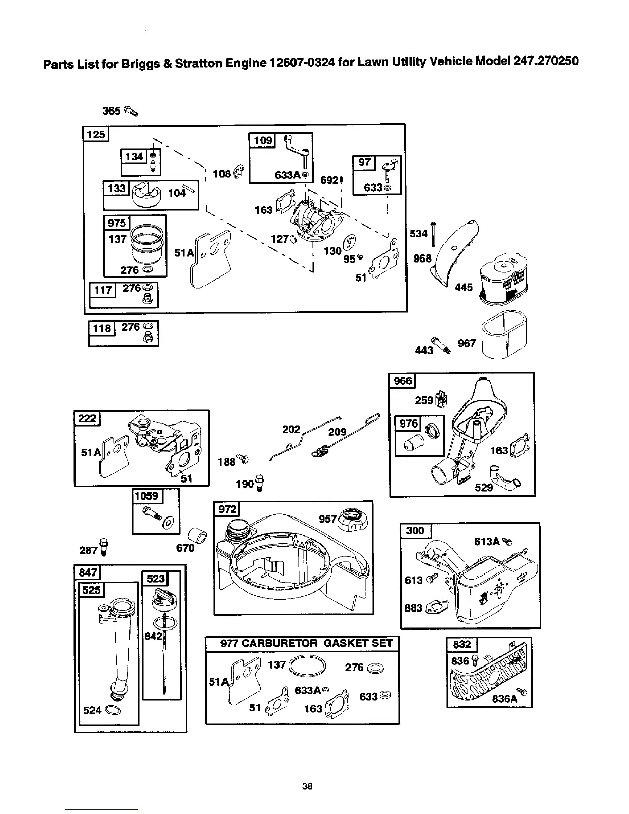 Parts List for Briggs & Stratton Engine 12607-0324 for Lawn Utility Vehicle Model 247.270250