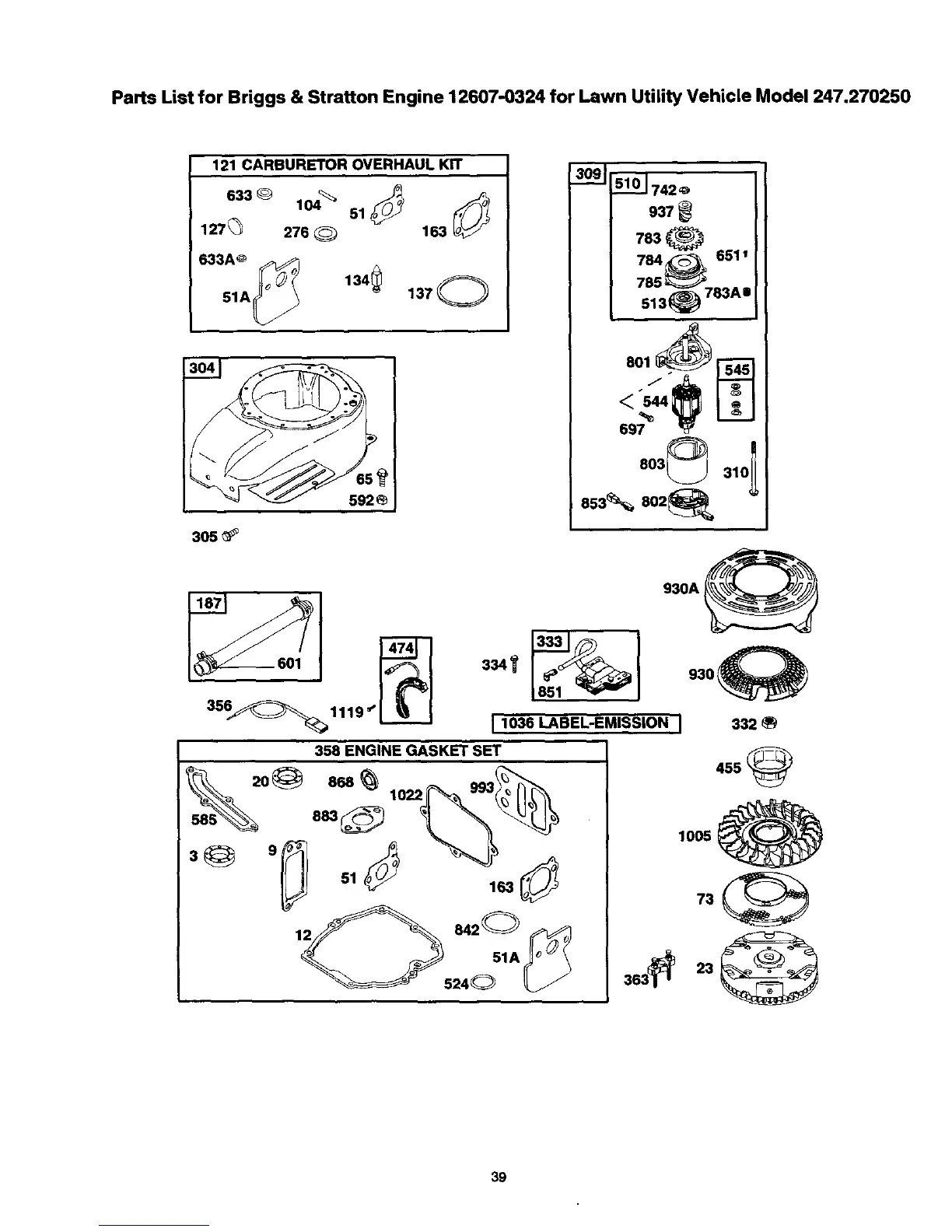 Parts List for Briggs & Stratton Engine 12607-0324 for Lawn Utility Vehicle Model 247.270250