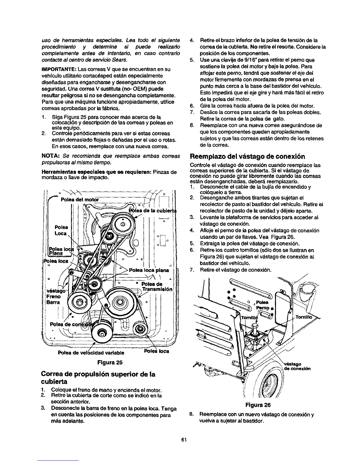 NO'I'A: Se recomienda que reemplace ambas correas