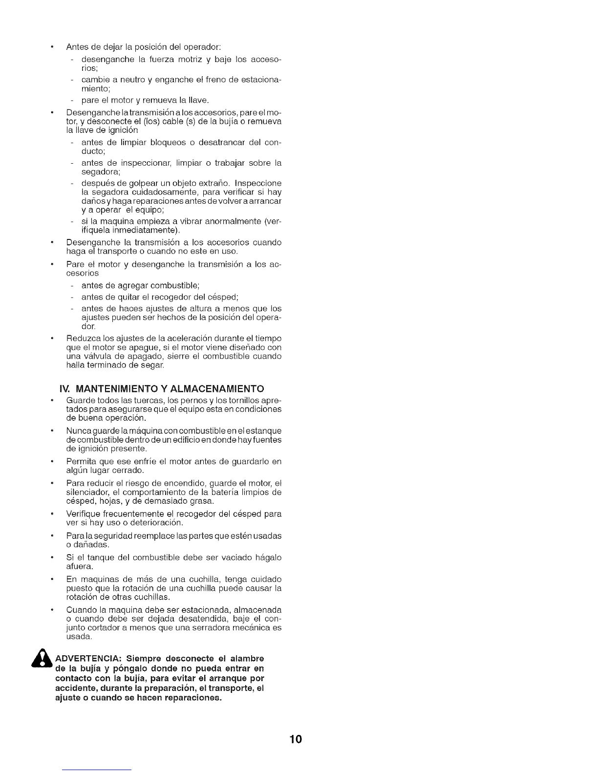 IV. MANTENIMIENTO Y ALMACENAMIENTO
